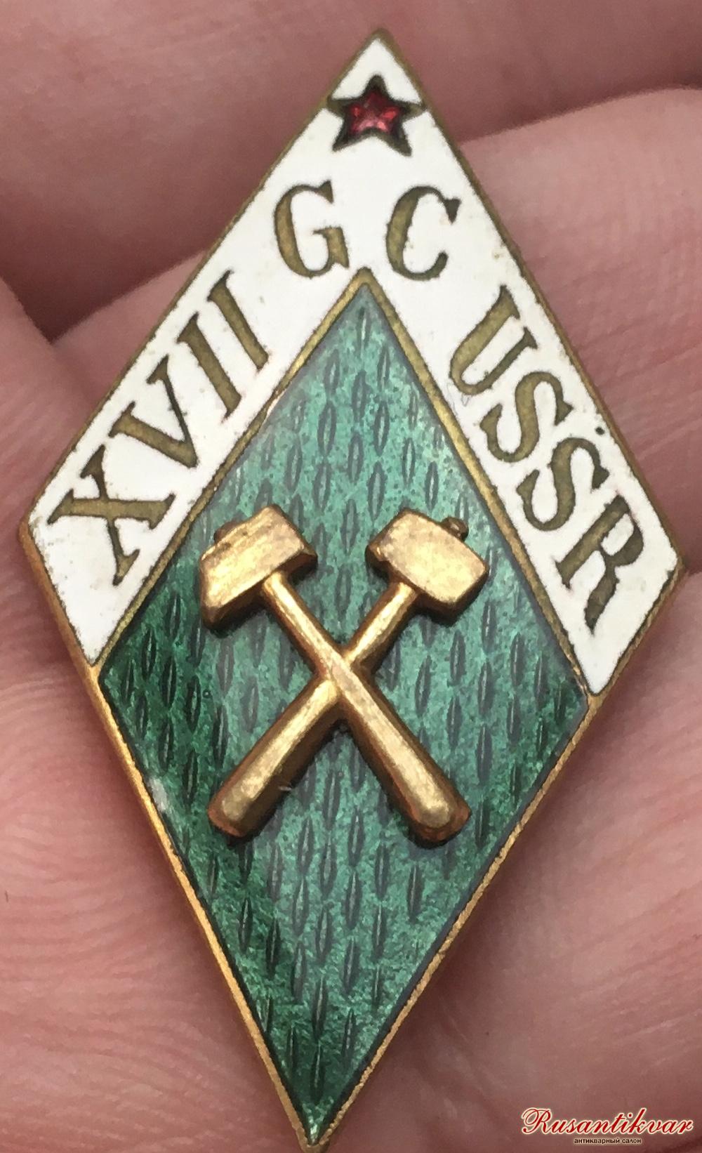 Знак 17 международного конгресса геологов 1937г, отличный.