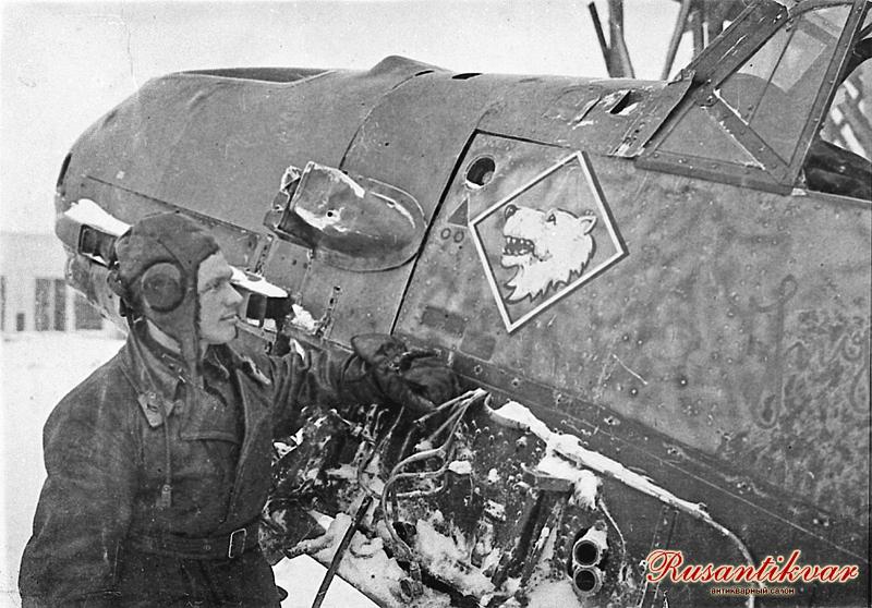 2.Меsserschmitt Bf.109E-7, сбитый старшим лейтенантом Елисеевым в воздушном бою 26 февраля 1942 года в районе станции Кола. Аэродром Мурмаши.