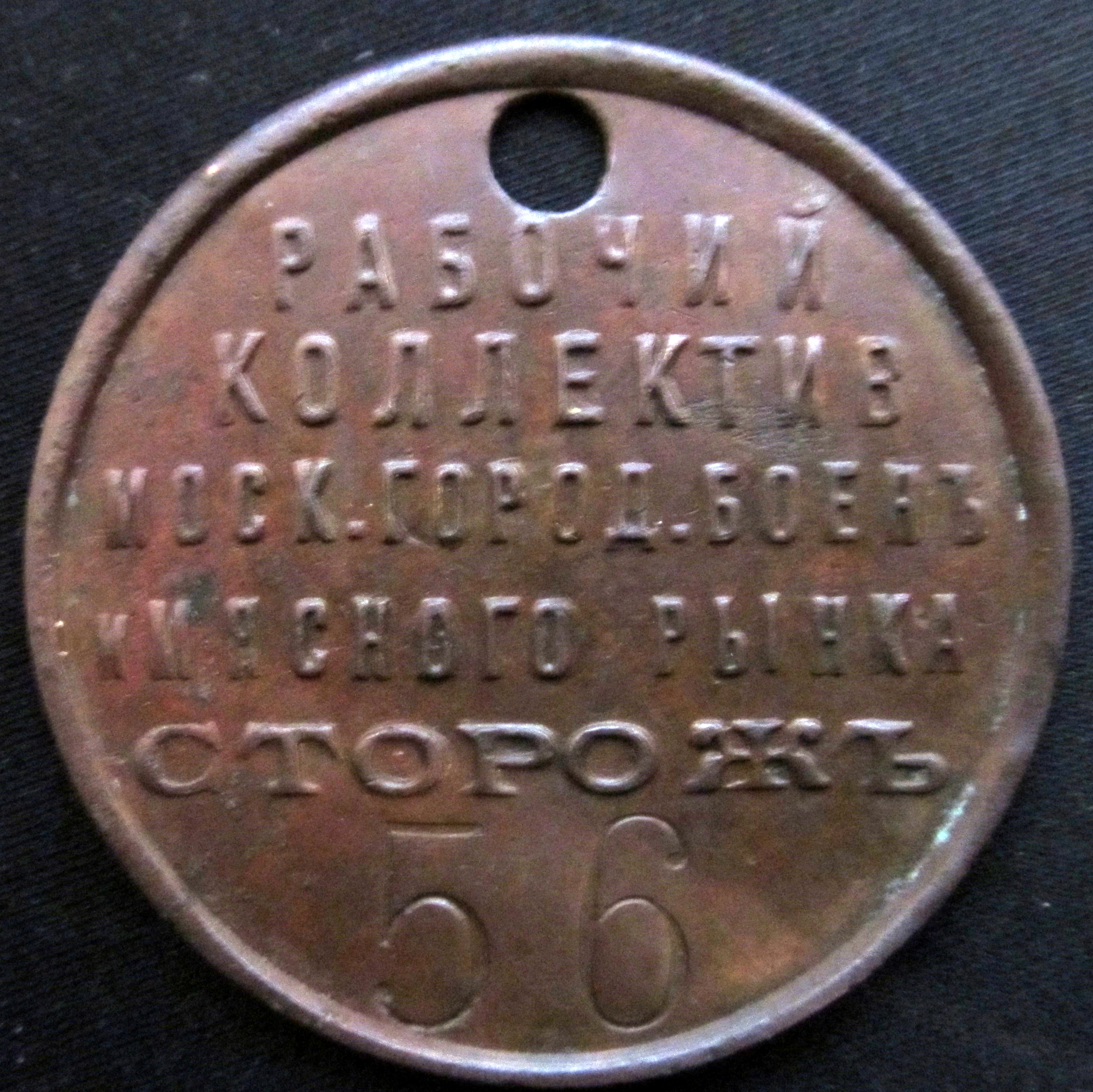 Должностной знак; Сторож рабочего коллектива Московских городских боен и мясного рынка.
