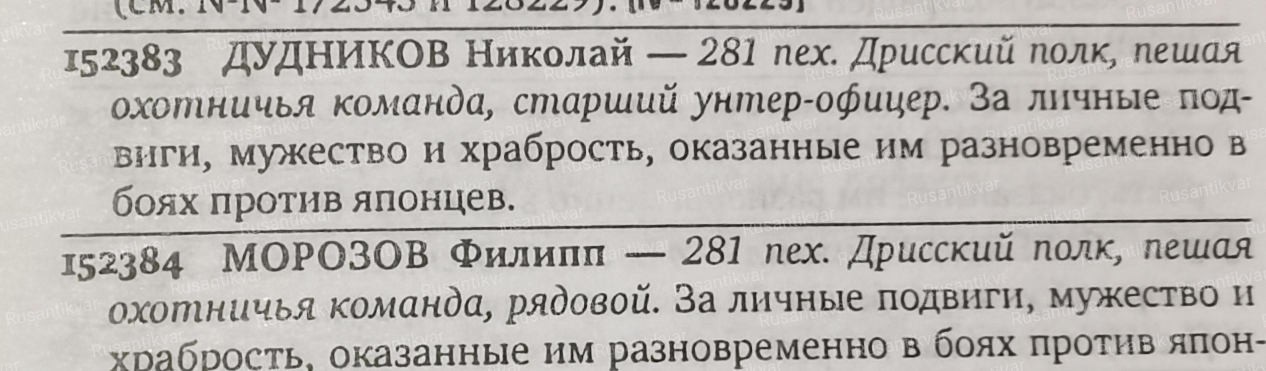 ЗОВО 4 ст.159.429 Васильев Иван-9 Сиб.пех. Тобольский полк,фельдфебель . За мужество и храбрость, разновременно оказанные им в боях против японцев.