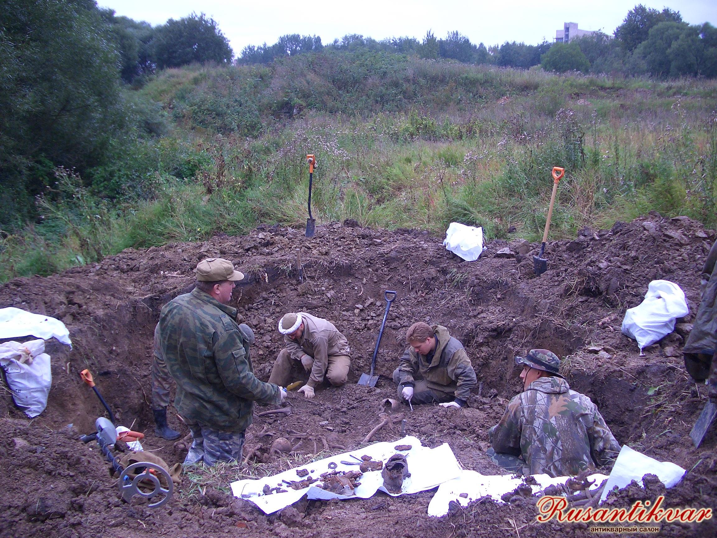 В одном месте останки солдат, погибших, вероятно, осенью 1941 года, были положены в воронку и засыпаны сверху известью. К их эксгумации приступили все участники экспедиции, находившиеся поблизости, в том числе и мой брат.