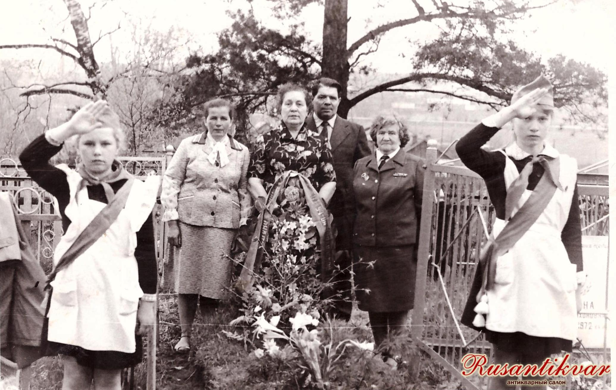 2. Сестра В. Володькина – Вера Платоновна Рогулина (в центре) на могиле экипажа Петрова, 1983 год.