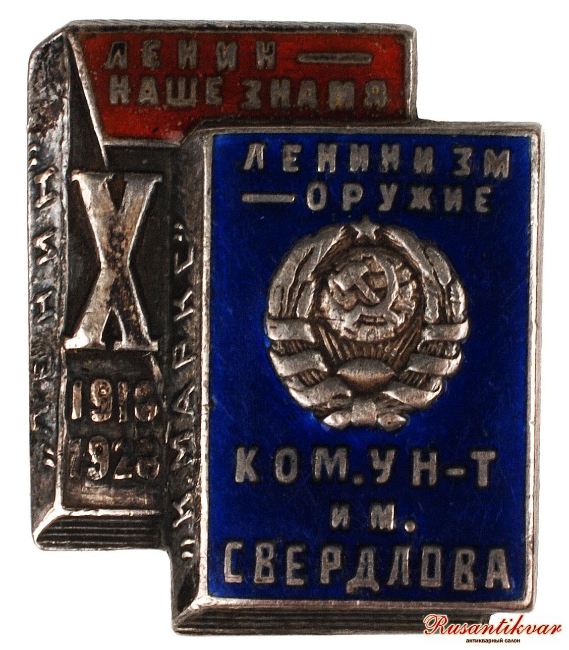 Знак "X лет Ком. ун-та им.Свердлова" 1928 г.