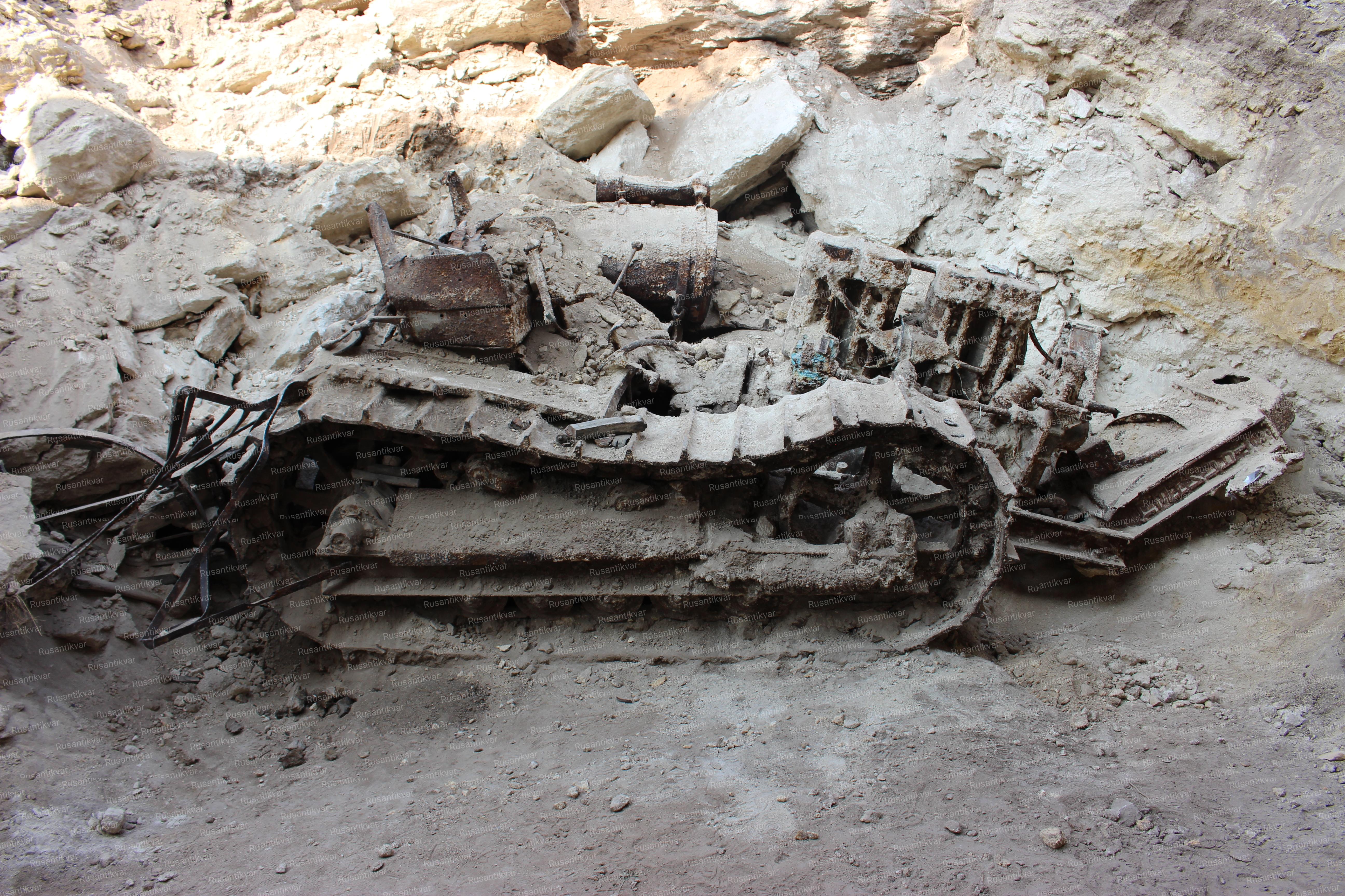 Но были и три момента, которые не укладывались в эту версию. Во-первых, по воспоминаниям выживших участников обороны Аджимушкая 1942 года, второй гусеничный трактор был марки СТЗ (Сталинградского тракторного завода), а этот хоть и был «Сталинец», но ЧТЗ. А во-вторых, трактор стоял в выработке не как положено объемному агрегату в ограниченном пространстве и рассчитанному на длительную работу - у стеночки, а как-то неаккуратно под углом посреди прохода… И в третьих, на траках гусениц сохранилась засохшая глина, словно он незадолго перед тем как попасть под своды каменоломен преодолевал проселочную грязь после дождей.