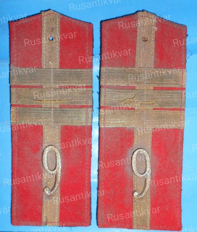 Погоны вахмистра-имеющего квалификационную нашивку разведчика, шифровка 9 указывает на 9-ю конную арт. батарею.Погоны принадлежали вахмистру 9-й конной арт. батареи
