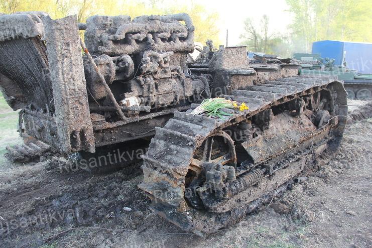 К сожалению, «Сталинец» оказался в куда худшей сохранности - сказалось отсутствие капотов двигателя и меньшая, чем у «Стюарта», глубина погружения в песок на дне реки.