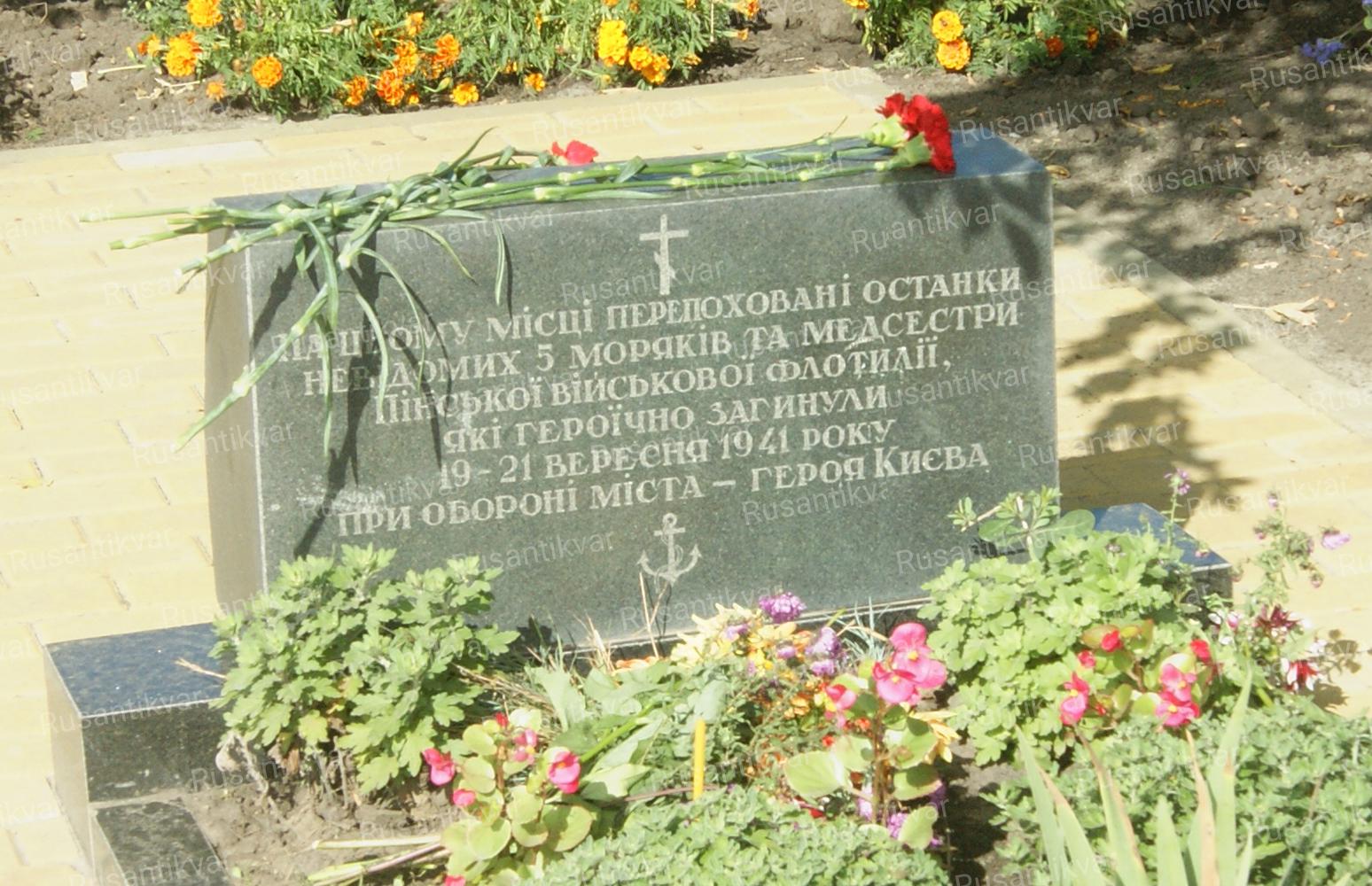 После войны исполком Иванковского сельсовета обустроил братскую могилу, в которую, по непроверенным данным, легло 1700 защитников Киева, в том числе, часть погибших моряков. Найденные поисковиками останки были похоронены сюда же со всеми воинскими почестями и по христианским обычаям в два этапа, 9 мая 2007-го и 9 мая 2009 года. Идентифицировать, к сожалению, удалось единицы. Первым стал пограничник Петр Потапович Постоялкин, сражавшийся вместе с моряками. У него был найден хорошо сохранившийся медальон, а в г. Зимогорье Славяносербского района Луганской области нашлись его родственники. Батальонного комиссара ПВФ Петра Григорьевича Паргамина установили по найденному Андреем Макаровым ордену Красной звезды № 3388. К нему родственники приехали на захоронение в Иванькове.