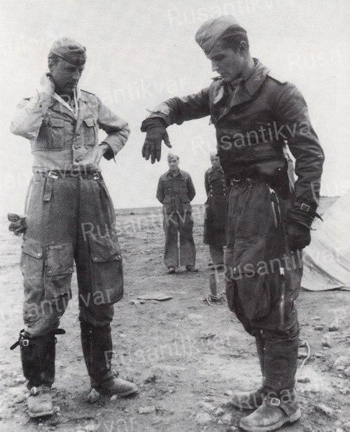 Обер-лейтенант Вальтер Крупински и лейтенант Эрих Хартманн в Бергхоф после церемонии награждения дубовыми листьями к Рыцарскому кресту.