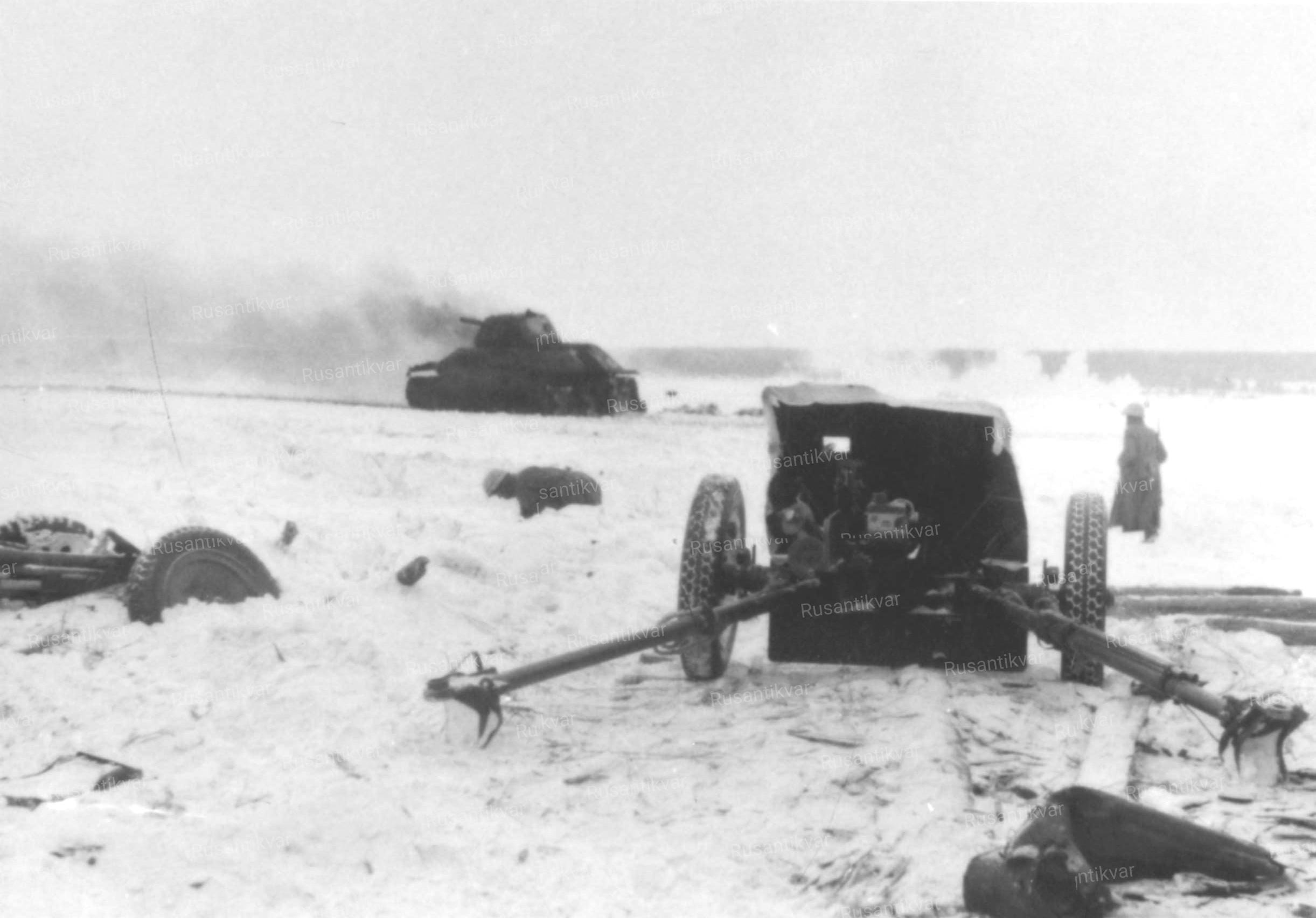 12.Расчёт 45-мм противотанкового орудия бойцов РККА на огневой позиции (РГАКФД).