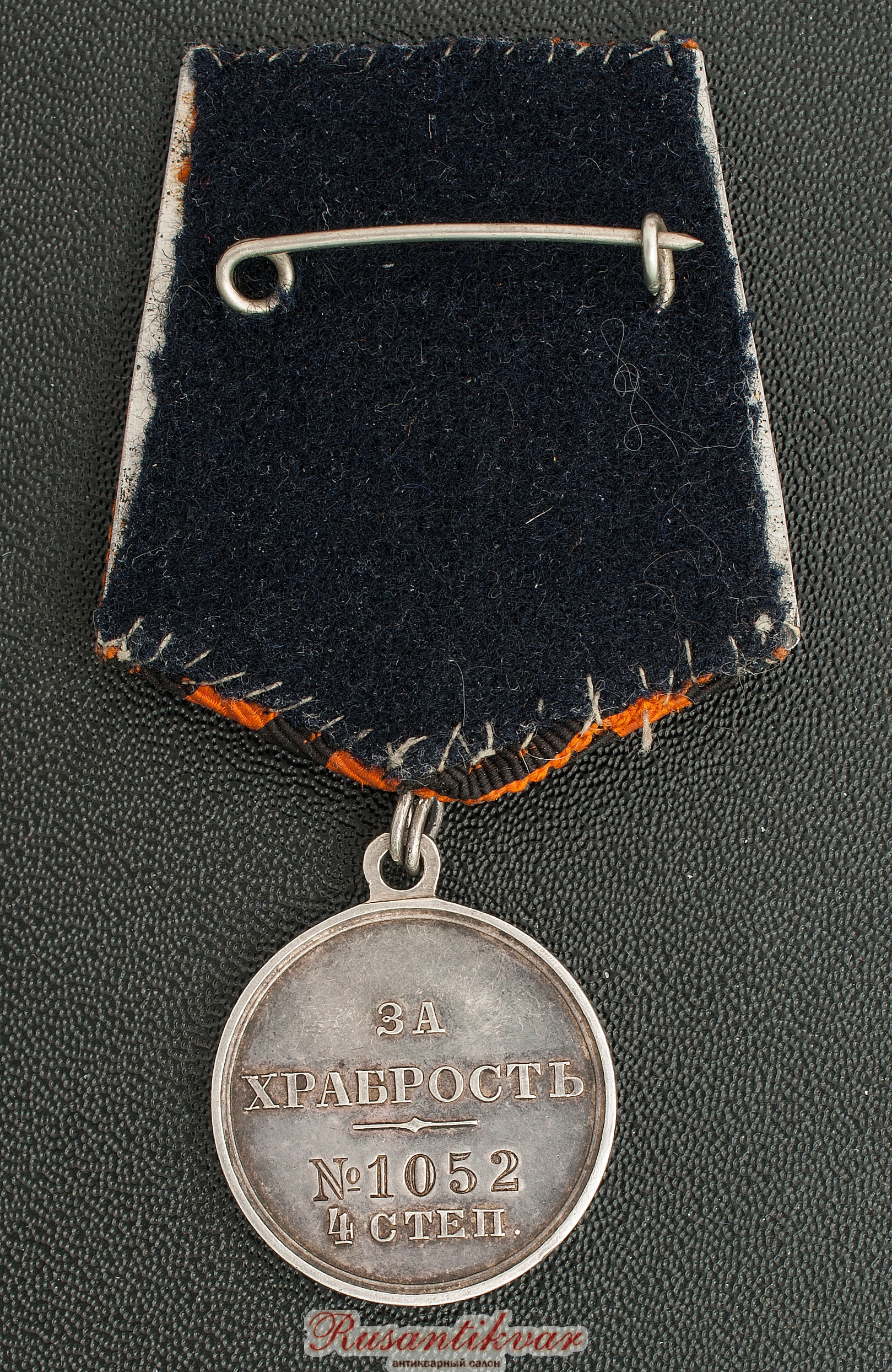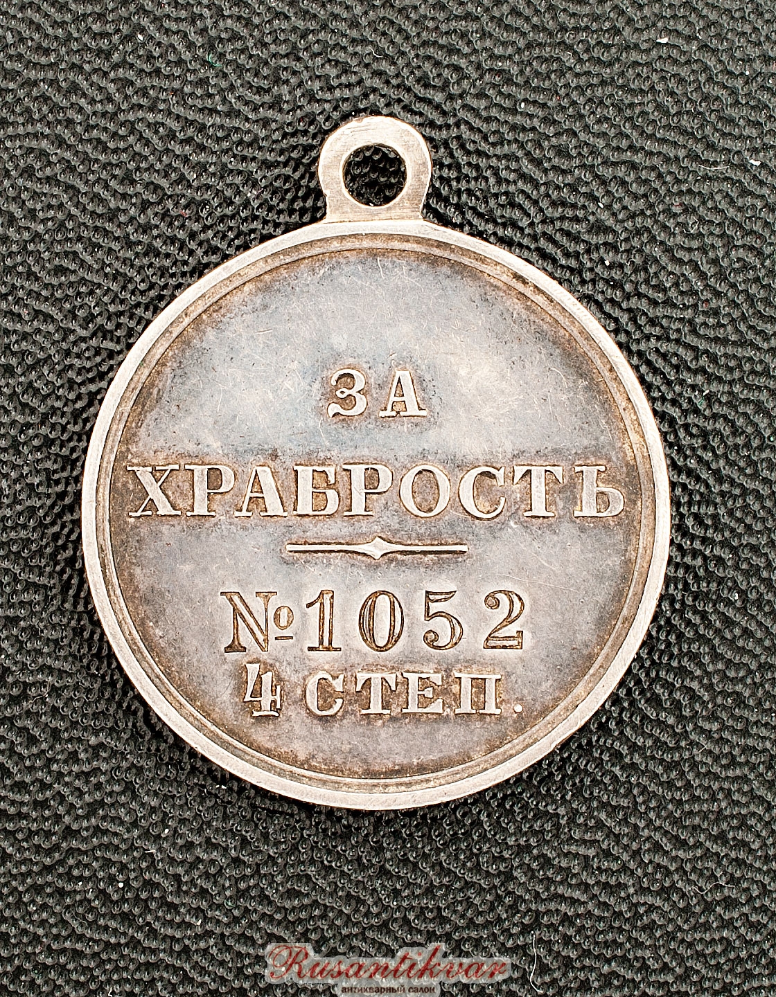Медаль "За Храбрость" 4 степени №1.052 для награждения нижних чинов пограничной стражи.