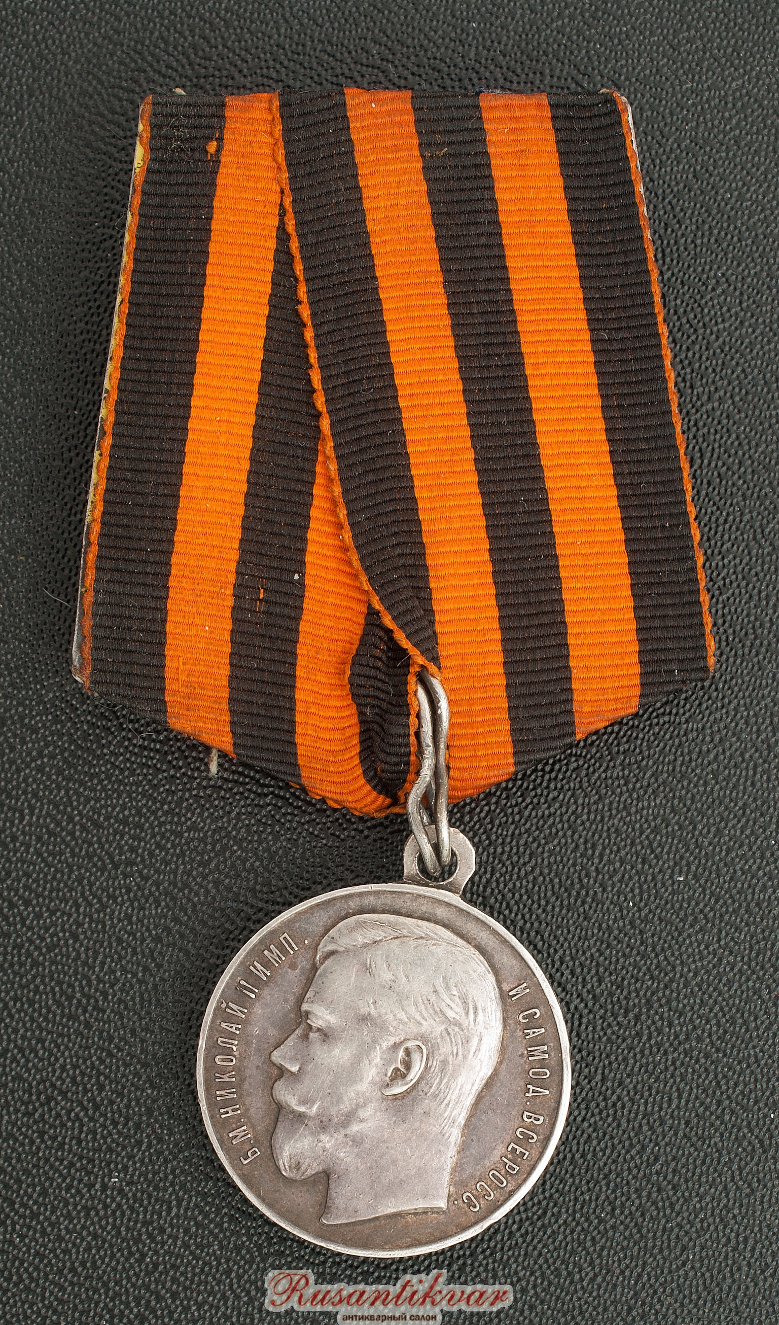 Колодка на две награды медаль "За Усердие" с портретом Императора Николая II и Георгиевская Медаль 4 ст № 763 (За Храбрость) для пограничной стражи