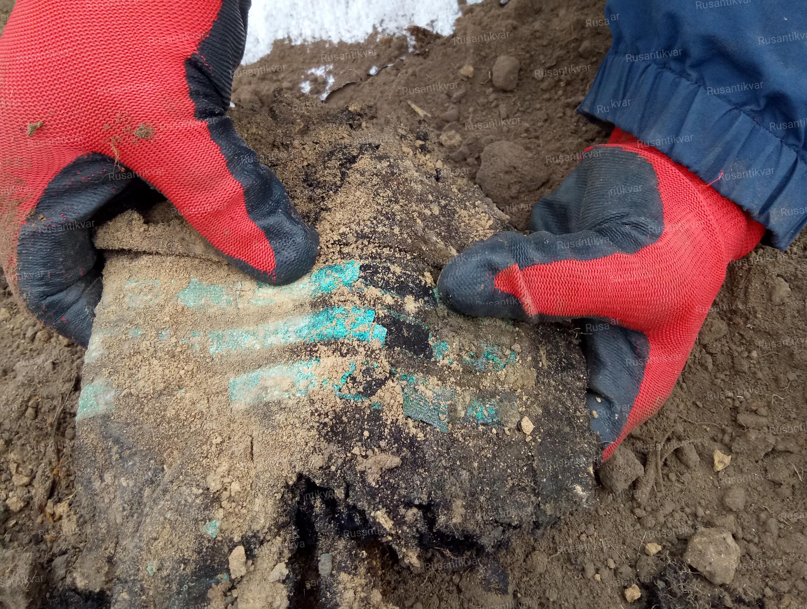«Раним субботним утром 28 сентября 2019 года мы отправились малой группой в составе 3-х человек в район с. Любарцы (Бориспольский р-н, Киевской обл.). Целью поездки было обнаружить места ожесточённых боёв в окружении частей 37А в сентябре-октябре 1941 г. Планировали найти место разбитой автоколонны. Но опоздали. Поле, на котором хотели поработать, уже было засеяно озимыми зерновыми. Мы уже было развернулись домой, но возникла идея заехать на старые места, как говорится «а вдруг...». Очень не хотелось впустую потерять день. Ближайшим, интересным для поиска, местом было поле возле кургана «Язвина могила». 20 сентября 1941 года здесь была предпринята попытка прорыва кольца окружения отрядом моряков Пинской военной флотилии и пограничниками (подробнее про этот бой можно почитать в журнале «Военная археология» №5, 2019 г., статья «Последний бой Пинской военной флотилии», стр. 38 - прим. авт.). По инициативе краеведа Петра Фёдоровича Зинченко и Киевской общественной организации «Товарищество ветеранов разведки ВМФ», начиная с 2005 года и по 2009-й, здесь уже проводились работы поисковиками Киевского городского историко-патриотического клуба «Поиск», отрядами «Днепр» и «Патриот». Тогда были найдены и перезахоронены останки 41-го человека. В основном это были моряки ПВФ и пограничники. Да и наша организация неоднократно работала в этих местах. Но, тем не мене,е поле у кургана всегда притягивало к себе... Мы решили пройти по этим местам в очередной раз... Работали буквально в ста метрах от кургана. Один из первых крупных сигналов указывал на глубинный объект. После снятия метрового слоя тяжелого глинистого грунта из земли показалась винтовка Мосина и останки бойца. Аккуратно вскрывая «одиночку» в районе рук начали различать чёрное сукно. Первое, о чём подумалось в тот момент - моряк! И, как оказалось позже, я не ошибся. От пояса и дальше вверх, одна за другой, пошли пуговицы с якорями. В нижней части рукава, чудом сохранились фрагменты шинели. На них чётко был виден морской нарукавный знак различия с тремя широкими галунами (полосы из позолоченной канители) - капитан 3 ранга (по-сухопутному - майор). Эмоции переполняли. Не каждый день удаётся найти командира Пинской флотилии. Я продолжил раскопки. В районе левой груди у самых рёбер обвалился кусочек земли. Показался край плотно спрессованной бумаги. Неужели документ? - подумал я. Но рисковать не стал, не пытаясь удовлетворить своё любопытство на месте. Вырезал часть сырого грунта, завернул в целлофан и поместил в картонный контейнер. Спустя несколько часов работы были завершены. Я доложил руководителю нашей организации о проделанной работе, и мы отправились домой с чувством, что сегодняшний день прошёл очень даже не зря, и в надежде на то, что у этой истории будет своё продолжение».
