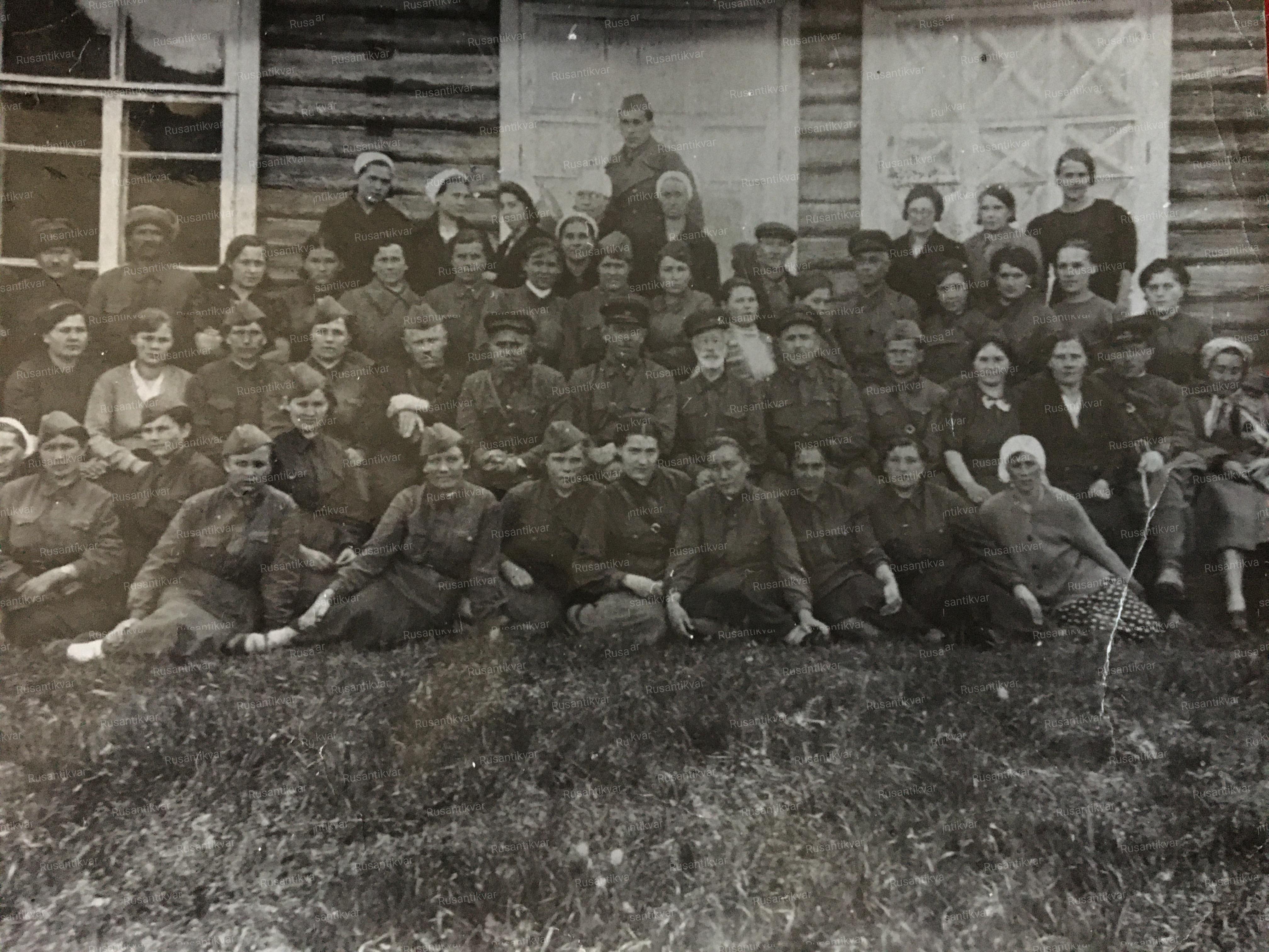 2.  у здания ЦРБ в Удомле 1942 г. Сидоренко А.Т. в центе, с бородой.JPG