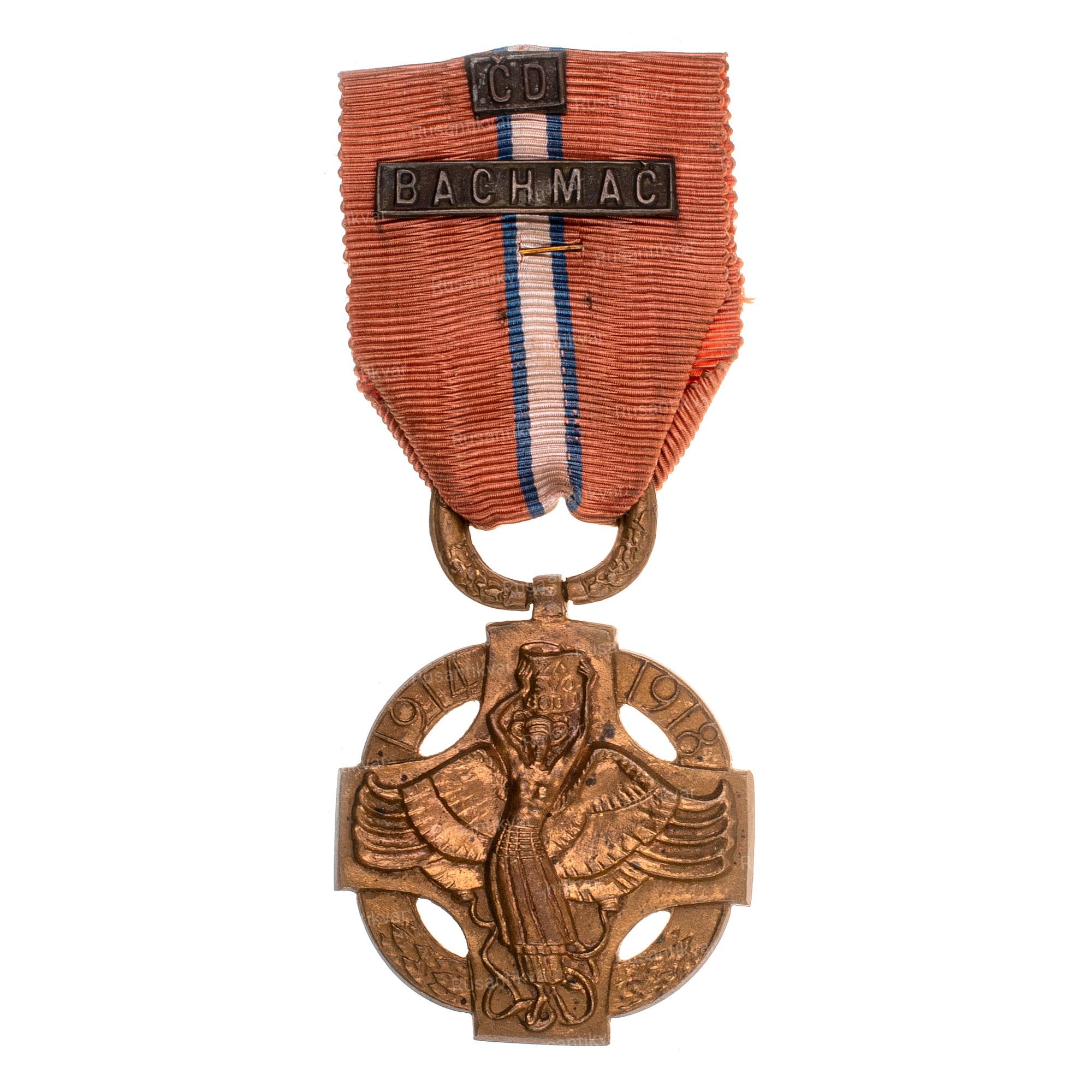 Учреждена 1 декабря 1918 г указом Президента Чехословацкой Республики Томаша Гаррига Масарика (1918 - 1935 гг). Автор эскиза - французский художник и медальер Эмиль Антуан Бурдель (годы жизни 1861 - 1929 гг, его инициалы помещены на нижнем луче креста на обороте "АВ"). Неизвестное производство, 1918 - 1938 гг. Бронза. Сохранность отличная (UNC-).