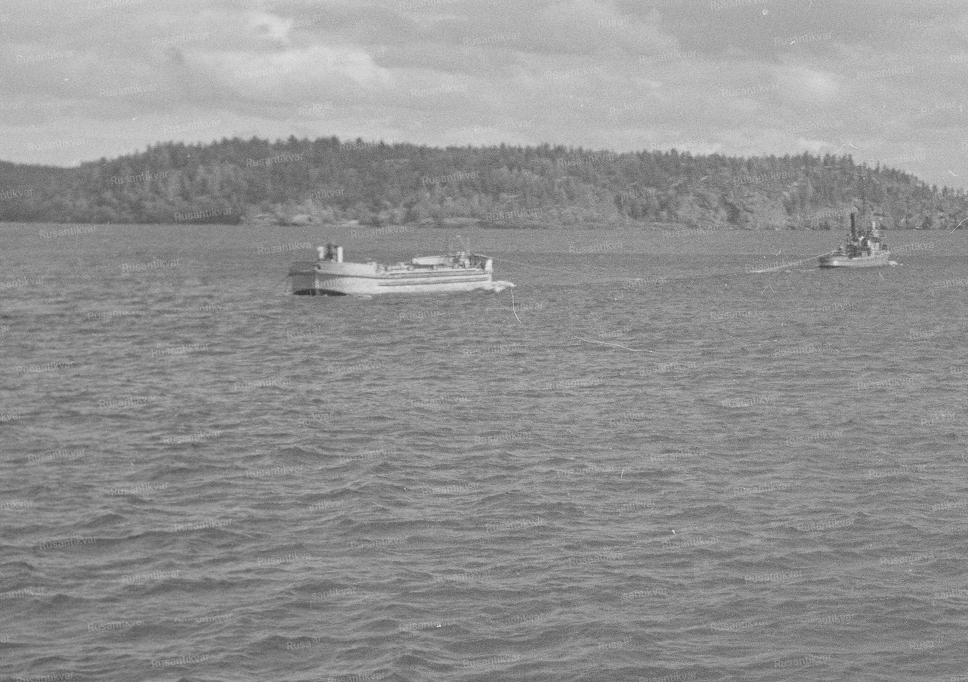 Буксир тянет баржу на Ладожском озере (фото из финского фотоархива боев на Ладоге)