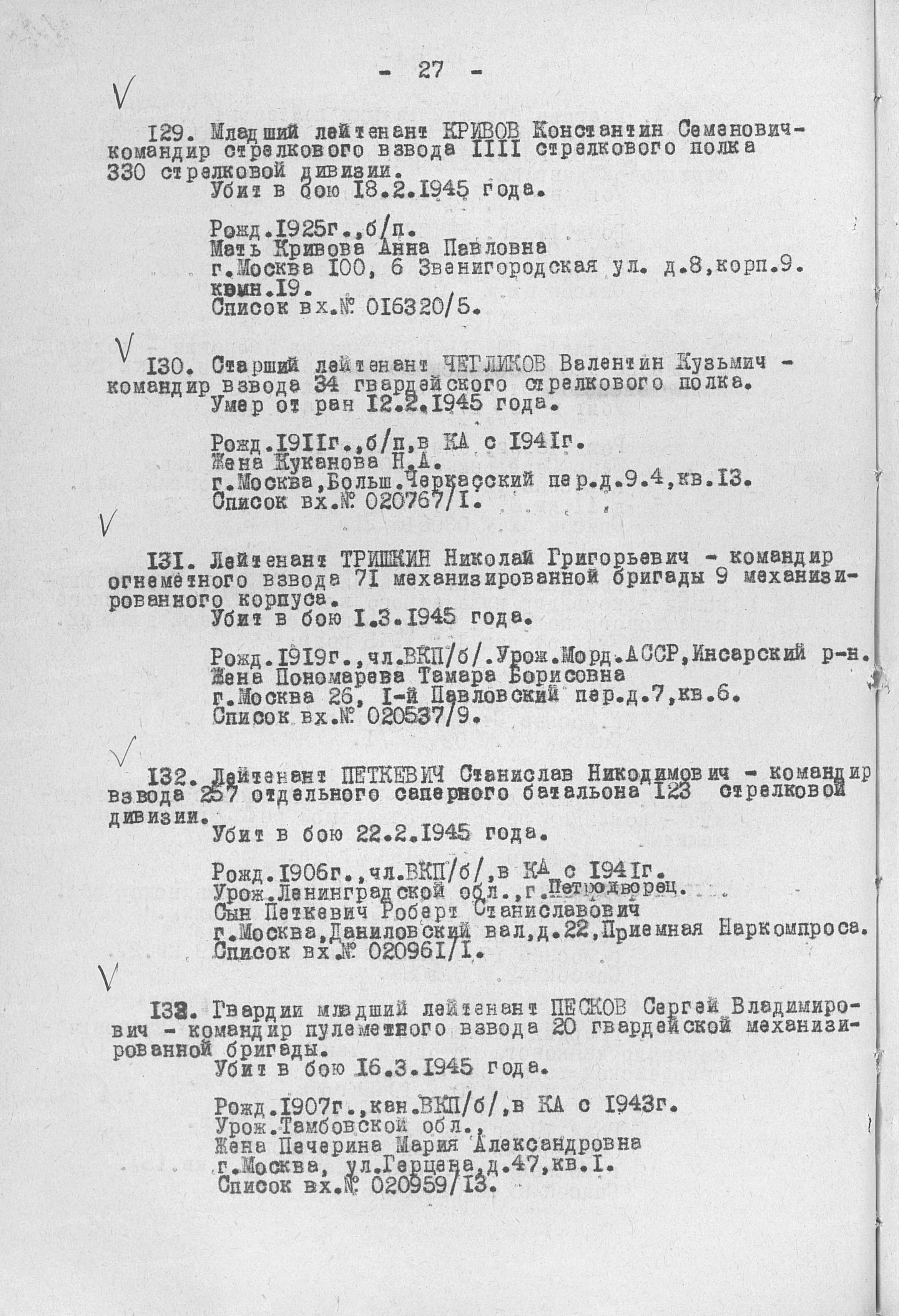 Именной список безвозвратных потерь офицерского состава.