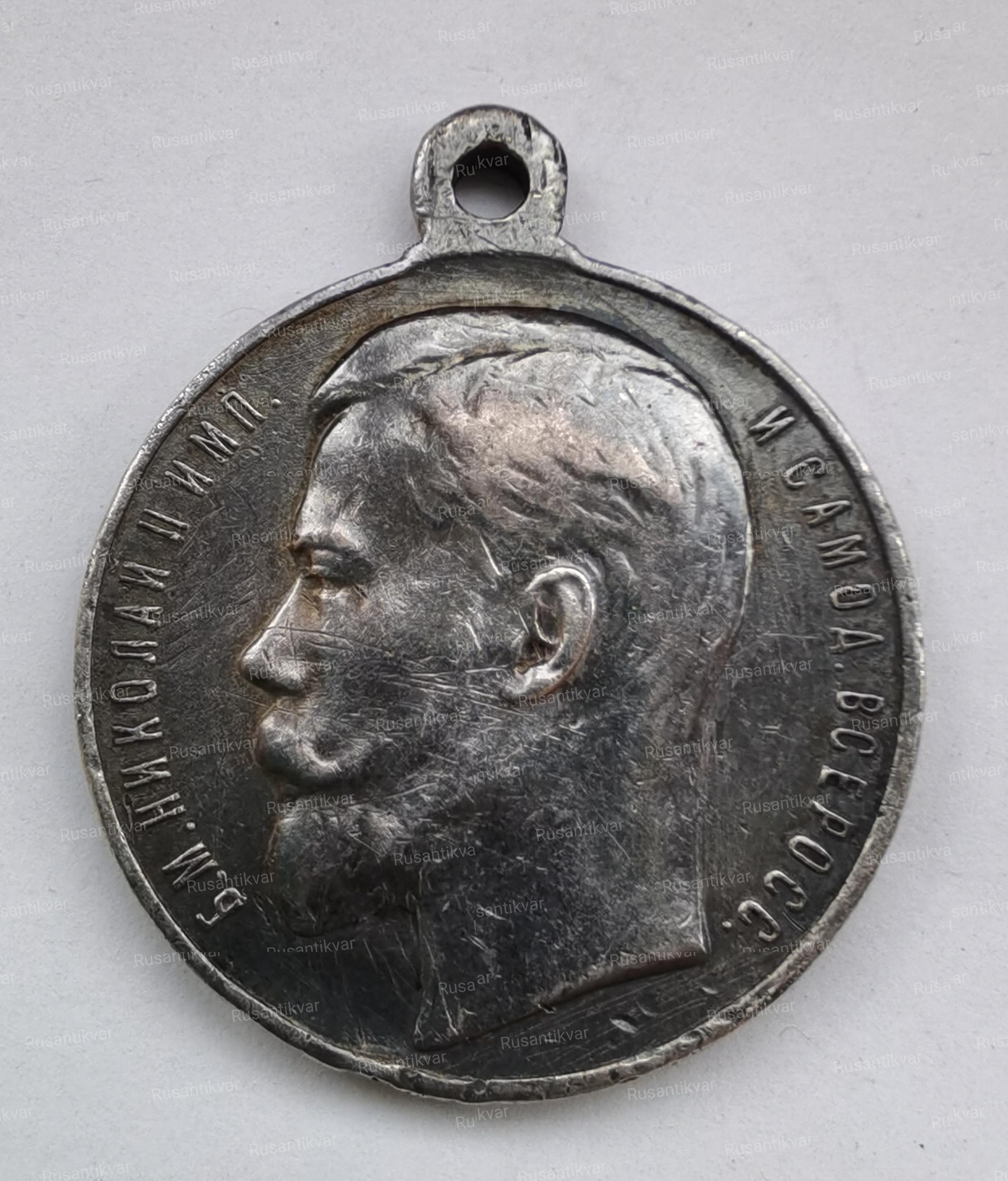 Медаль «За храбрость» с портретом Императора Николая II № 705 мастерской «Ф.Г.» (Ф. Гейльмейр, Санкт-Петербург, Демидов пер., 9).