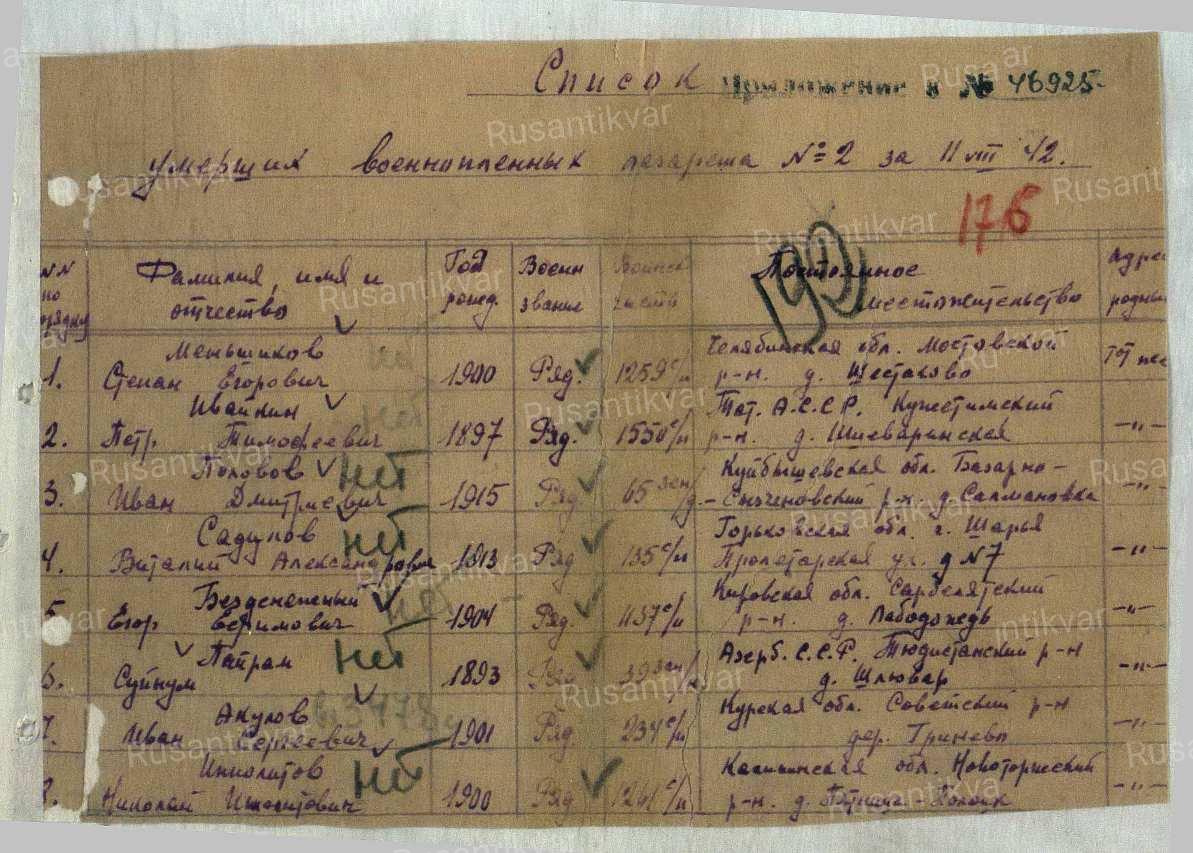 Действуя аналогичным образом, идем по списку дальше, отбирая, если необходимо, своих земляков по данным в правой колонке. Если она пуста, не пожалейте нескольких секунд, кликните на такого воина – нередко в самом документе место рождения указано, просто не вынесено в критерии поиска. И так, лагерь за лагерем…