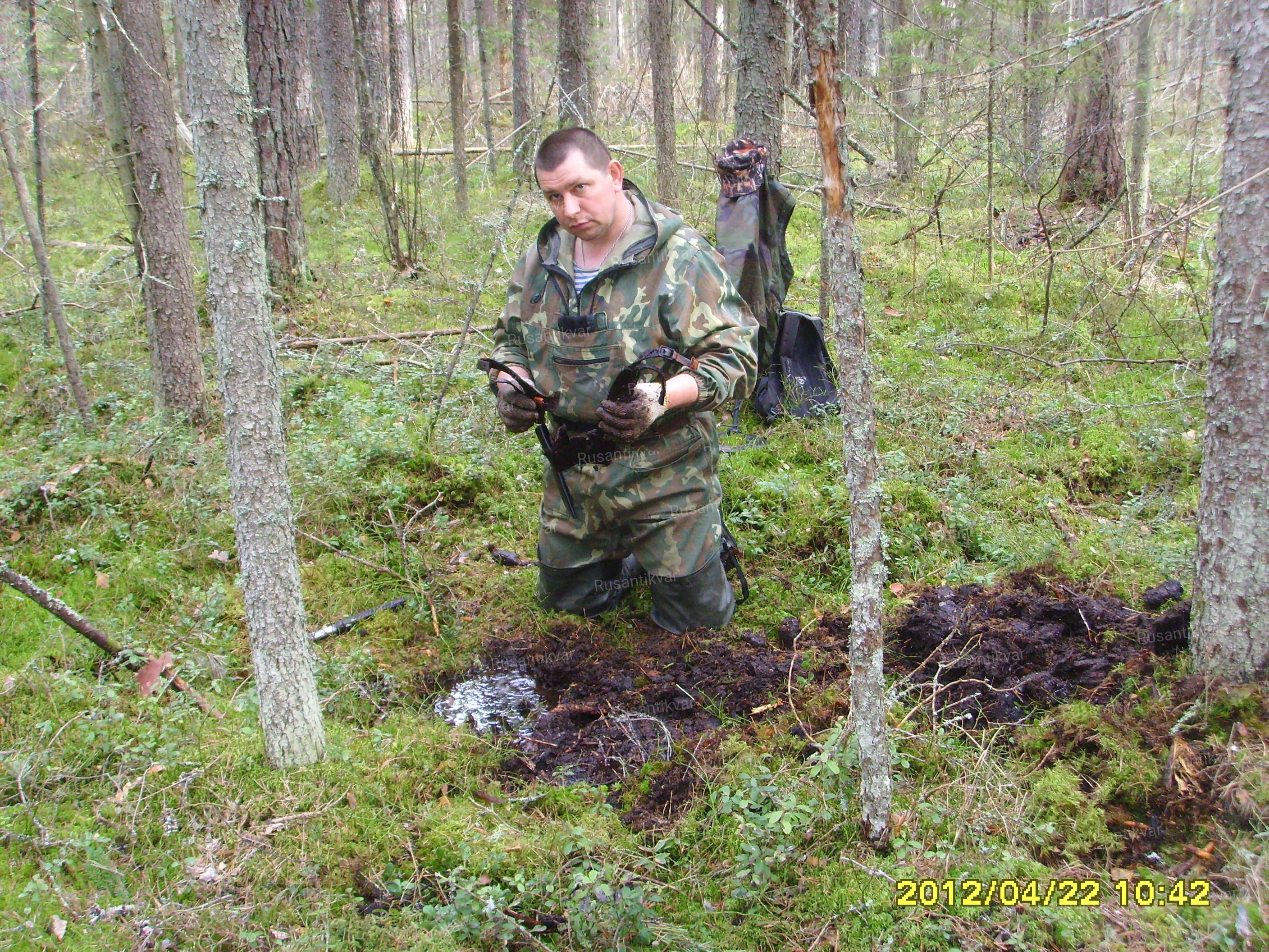 Соответственно, экспедиция этого года была направлена на исследование именно этих районов. В первый же день отряд вышел на предполагаемую базу, опять же не без помощи местных поисковиков, хорошо знающих здешние леса и болота.