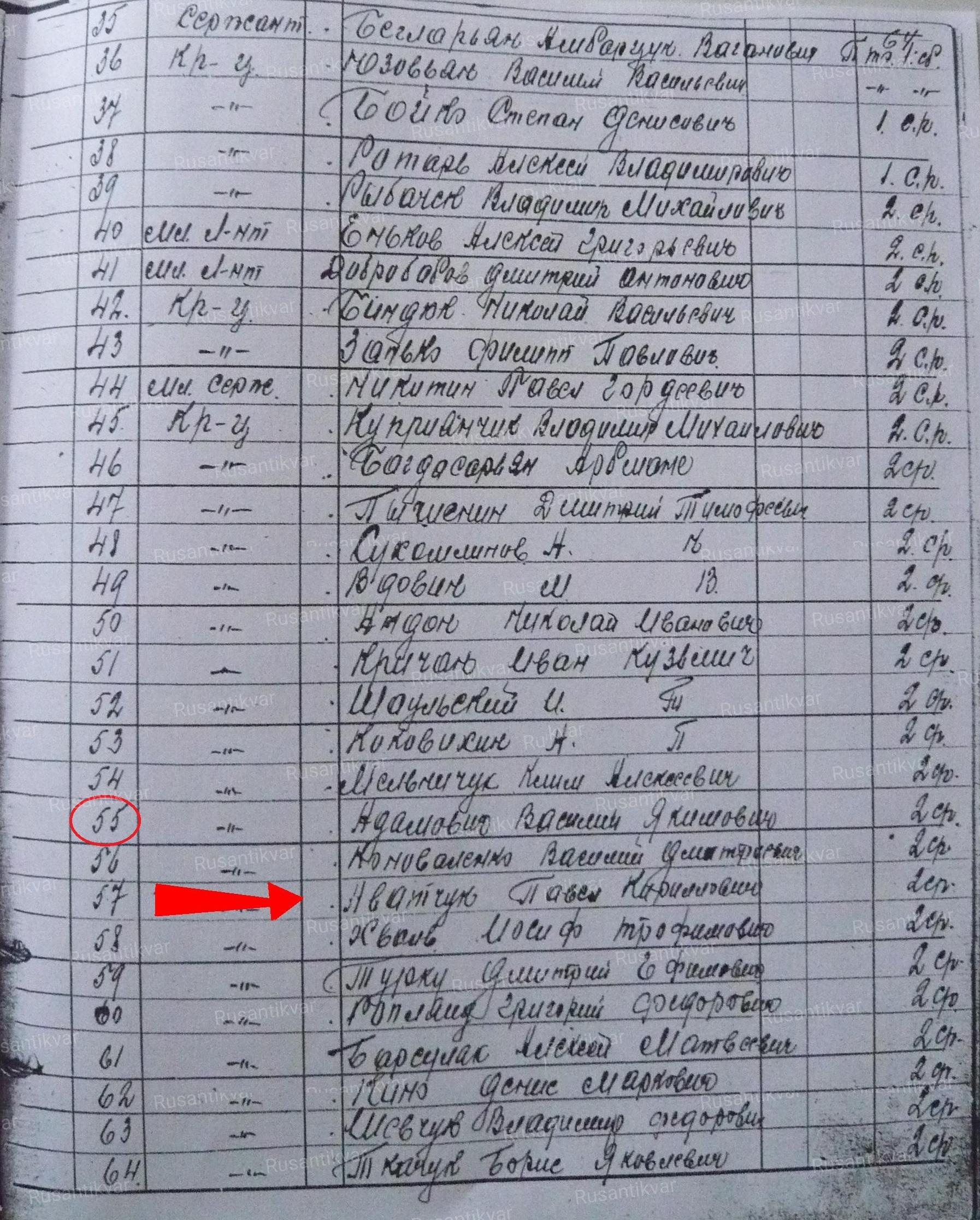 №57 - красноармеец Аватчук (Авдейчук) Павел Кириллович - «потерян во всех имеющихся полковых и дивизионных учетных документах».