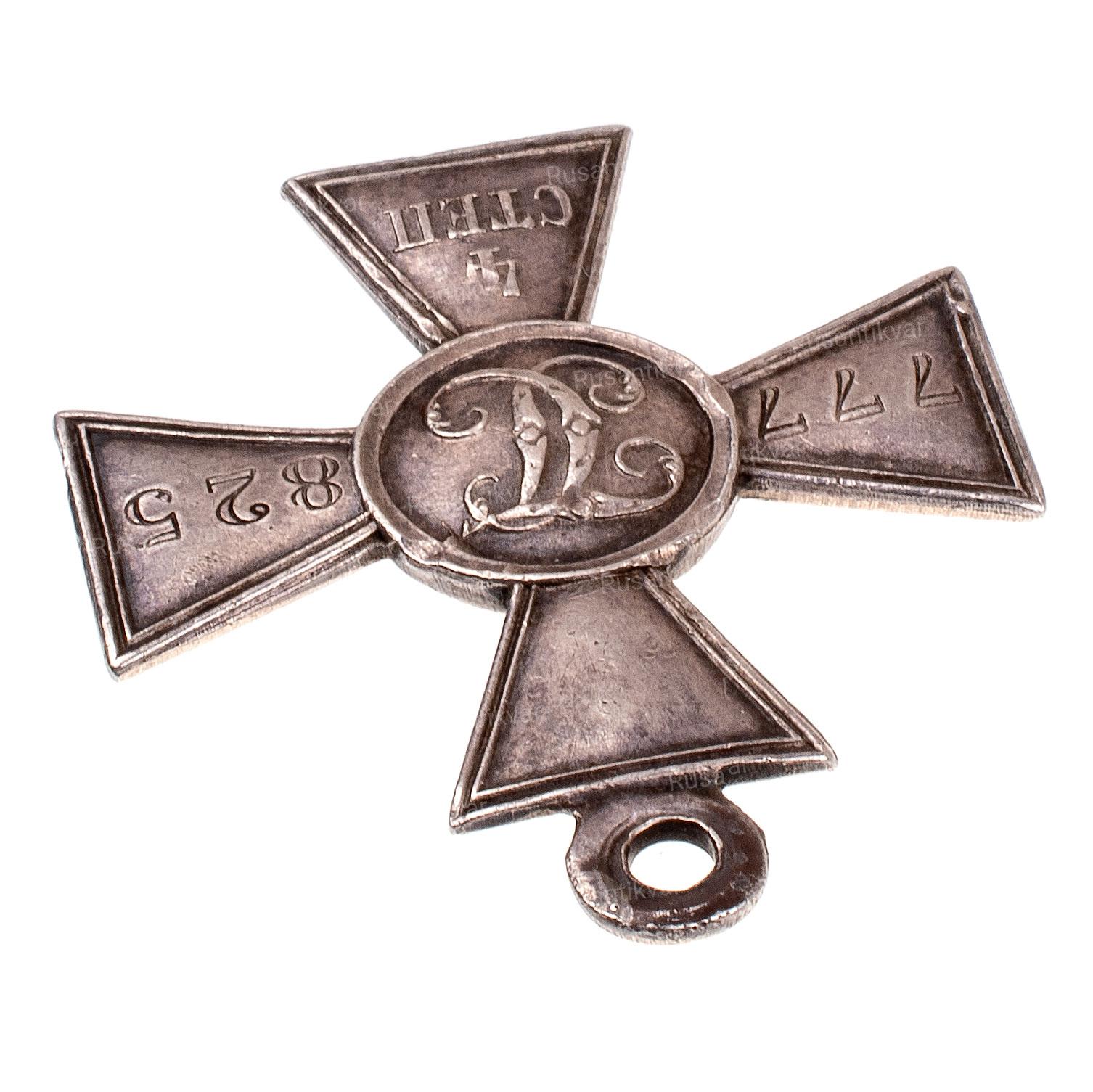 Петроградский Монетный двор, 1915 г. Серебро, 99", 10.22 гр. Размеры 41 х 34.3 мм. На оборотной стороне, на двух лучах креста, пуансоном выбито "483.918". Сохранность отличная (UNC-). М. Е. Дьяков "Медали Российской Империи" № 1132.8 (R1). В. В. Биткин "Сводный каталог медалей России. Наградные медали для ношения" т. 2, № 1099.6. За период с 1 января 1914 по 1 января 1917 гг Георгиевских Крестов 4 ст было изготовлено 1.190.150 шт (№ 1 - № 1.210.150). Несоответствие количества объясняется использованием крестов из старых запасов - невручённых ЗОВО (перерезанные номера).