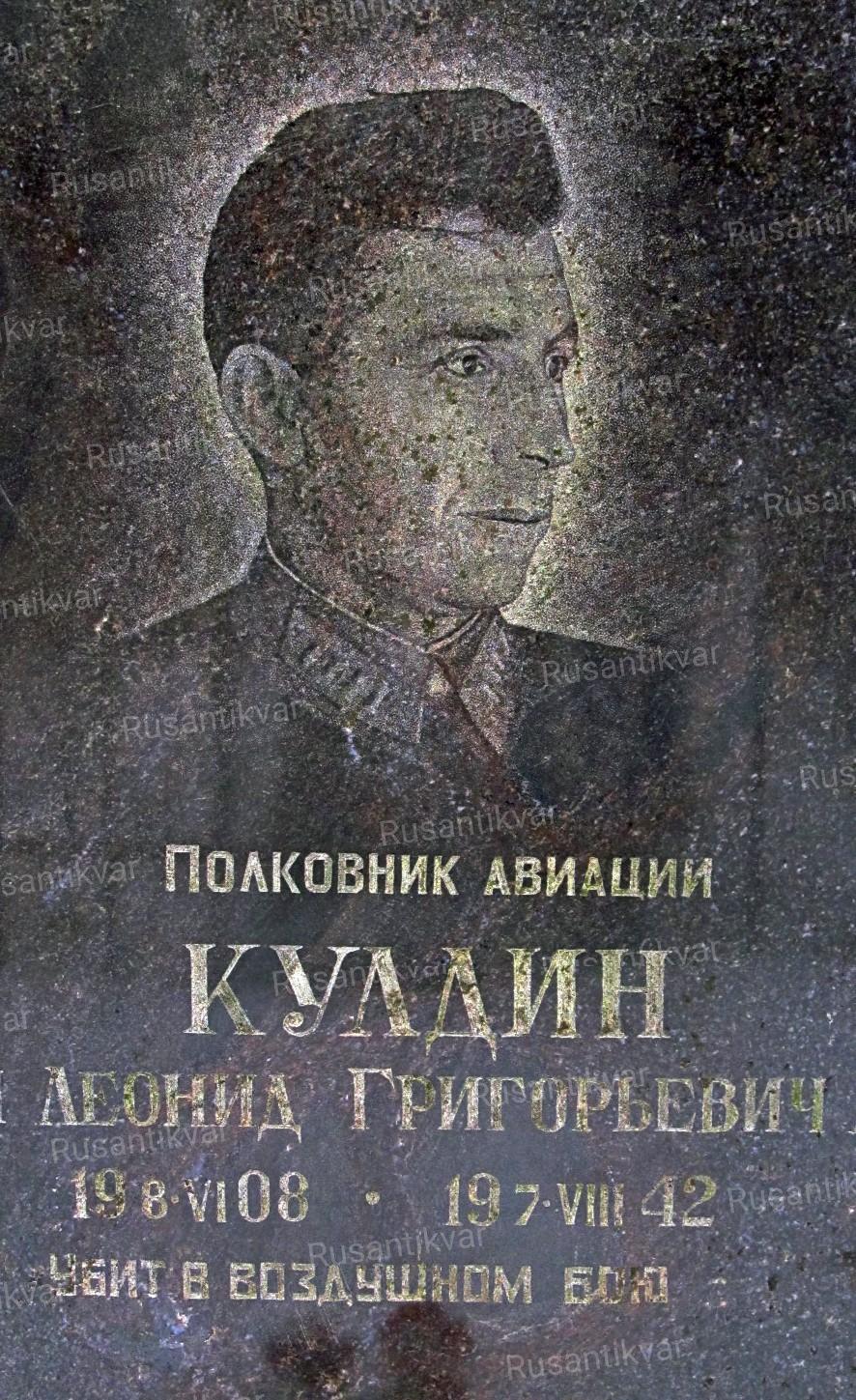 В списке потерь личного состава 201-й ИАД среди лётчиков 32-го ИАП указан полковник Кулдин Леонид Григорьевич, заместитель командующего 1-й ВА, 7.08.1942 года сбитый в воздушном бою. Место захоронения не указано .