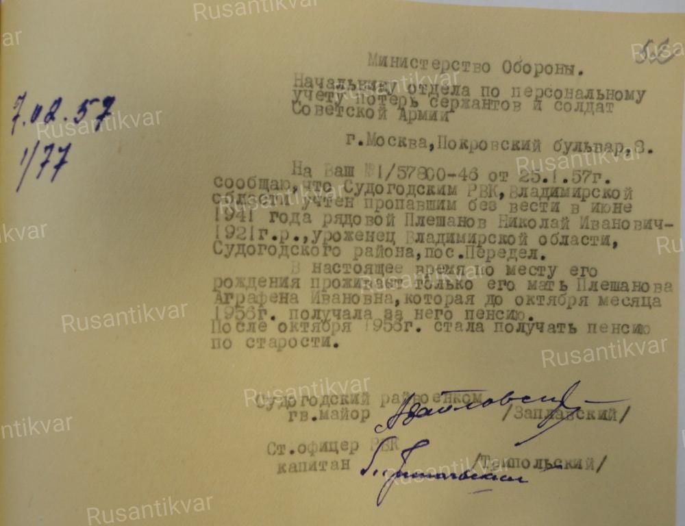Поэтому, дорогие мои коллеги и все интересующиеся данной темой люди, давайте будем объективными в своих суждениях. В подтверждение приведённой в статье информации привожу сканы некоторых документов военного времени, сохранившихся в архивах районных военкоматов Владимирской области.