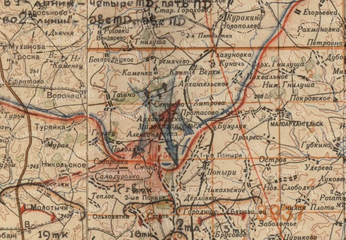 4. Фрагмент советской карты 1:50 000 (в 1 см 500 м), «попавшей в плен» к вермахту.