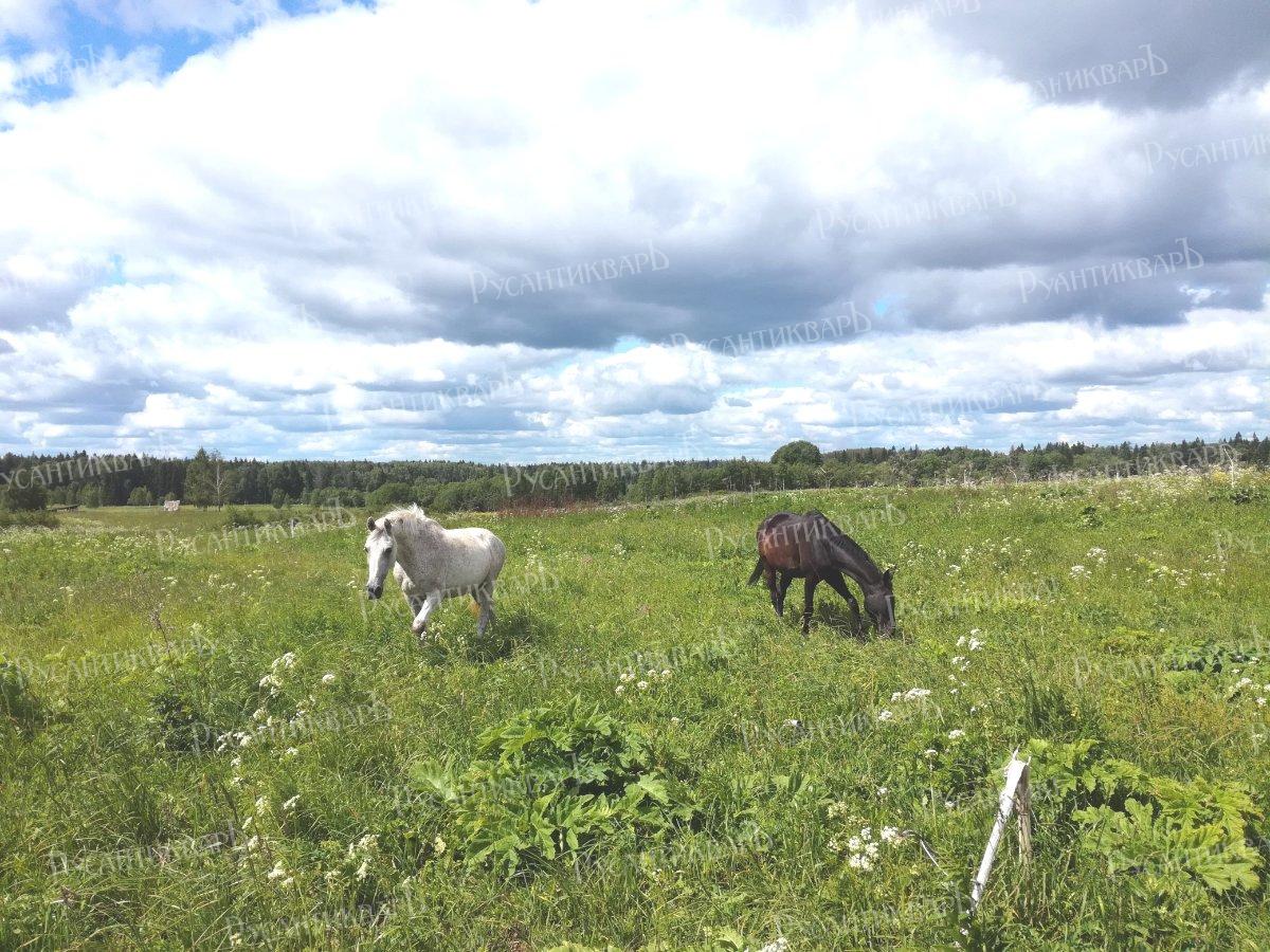15. Первые найденные гильзы от Дыскинского 37-мм зенитного орудия и трак от немецкого танка Pz-II. Закрытая стеной леса, вдали располагается деревня Козлово. Фото автора.