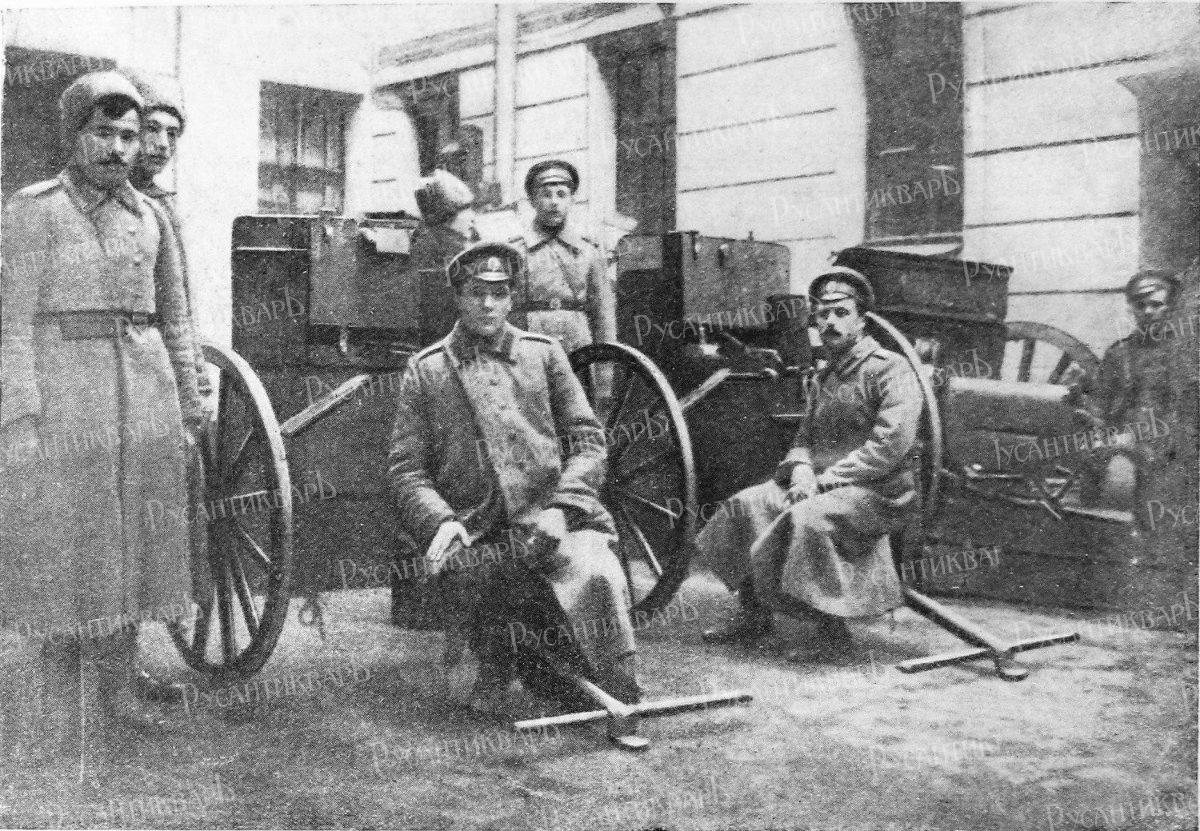 Училище в дни Революции. Добровольцам удалось запереть подступы к училищу со стороны Смоленского рынка (конец Арбата), Поварской и Малой Никитской, продвинуться от Никитских Ворот до Тверского бульвара и занять прилегающую сторону Большой Никитской улицы вплоть до Университета и Кремля. Юнкера захватили Кремль, Манеж, Метрополь, телефонную станция в Милютинском пер, почтамт. Юнкера-александровцы вели упорные многодневные бои на Арбате, на подступах к училищу, в районе улицы Волхонки и Бульварного кольца.
