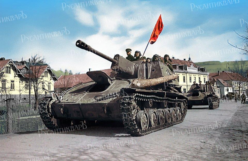Советская техника на освобожденной улице города Вены, 1945 год.