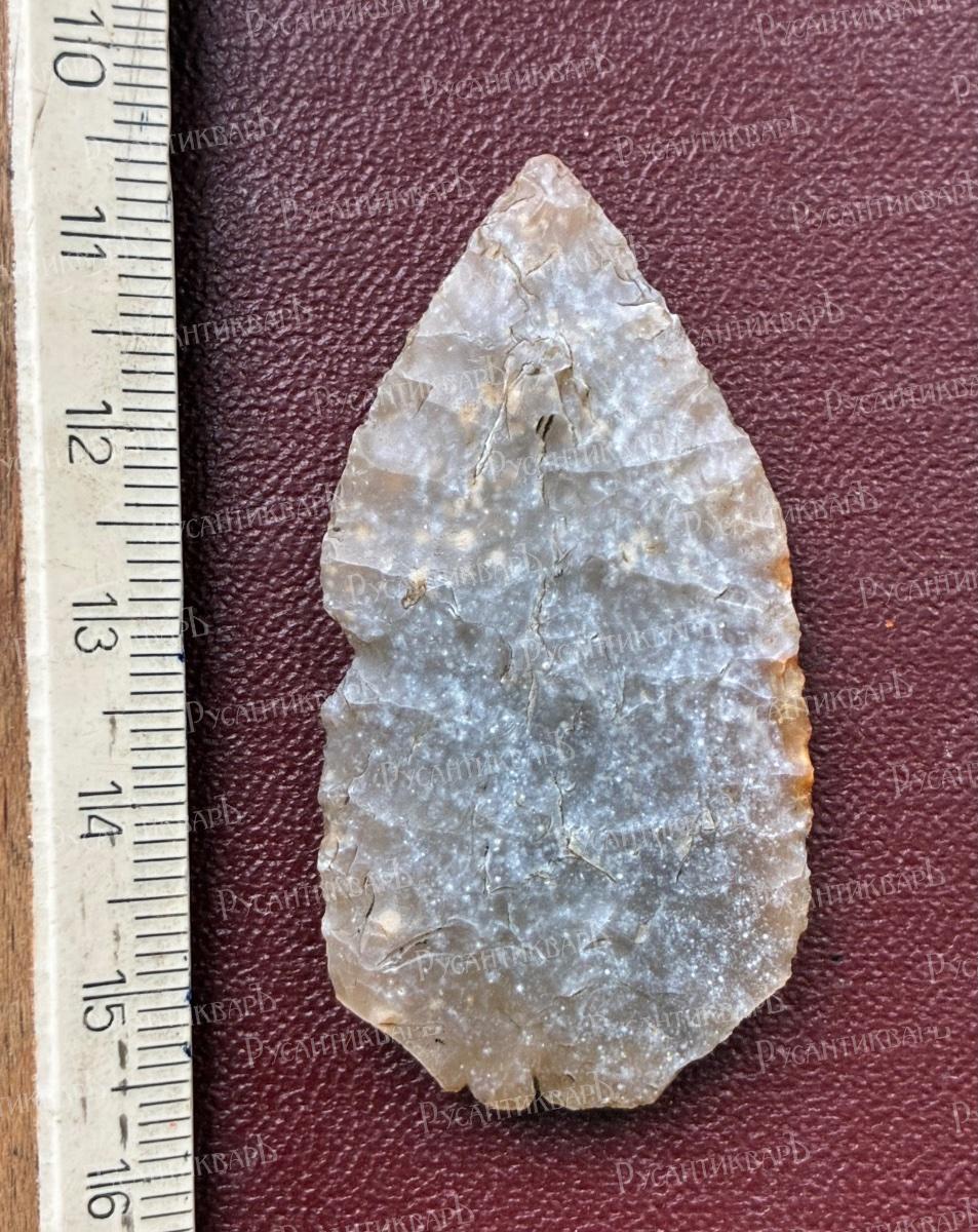 Кремневый наконечник стрелы Майкопской культуры бронзового века.Находка 1981 года на берегу Краснодарского водохранилища у поселка Джиджихабль.