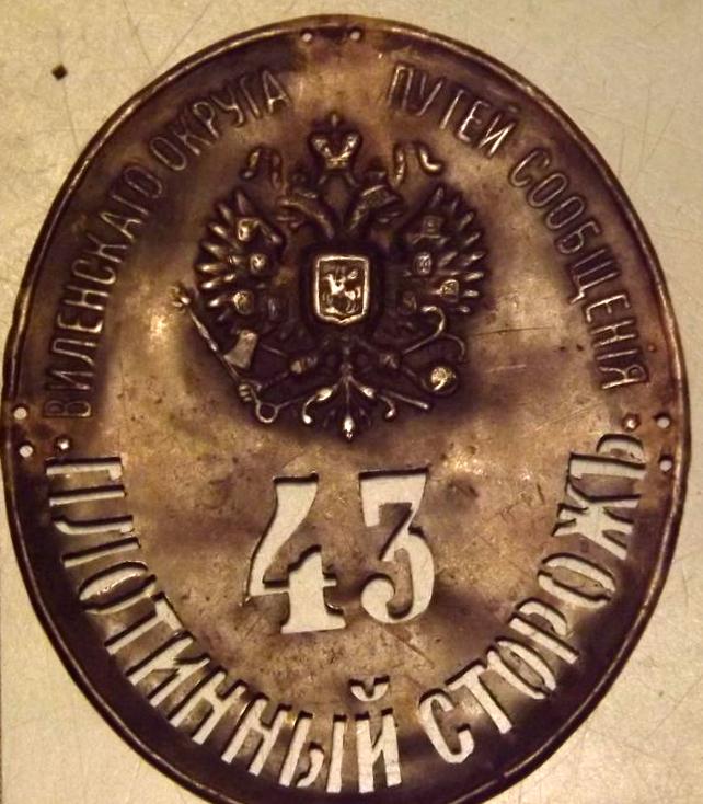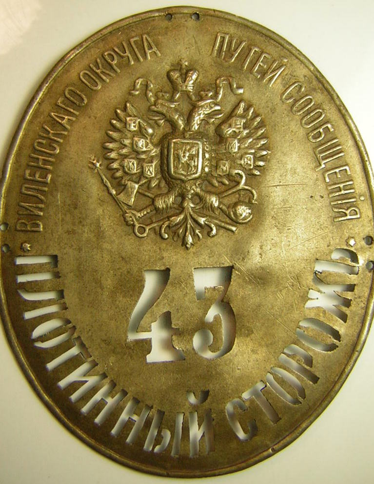 Должностной знак; Плотинный сторож Виленского округа путей сообщения.