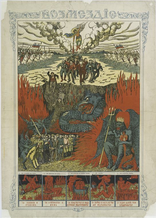 Создание образа врага – одна из основных задач любого пропагандиста. Так, среди рядовых солдат белых армий красные распространяли плакаты и листовки с напоминанием о том, что следом за белыми придут и помещики, которые снова отберут землю. Но помимо этого красные обещали новый мир – мир свободы и труда, который они противопоставляли миру старому, которые белые собираются вернуть на своих штыках.