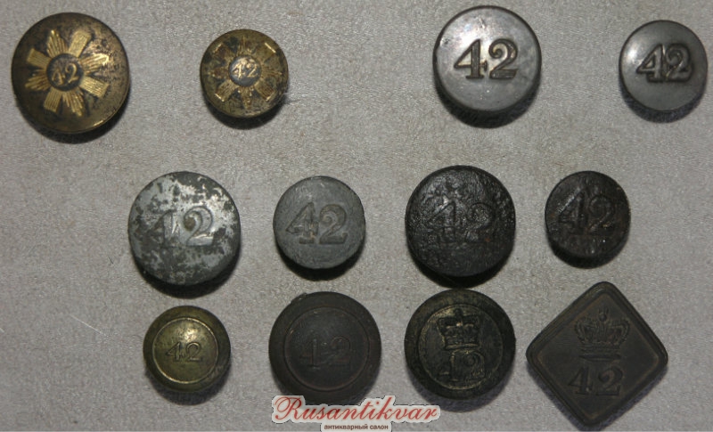 Две большая и малая пуговицы сержантского состава 42го полка. Из моей коллекции.