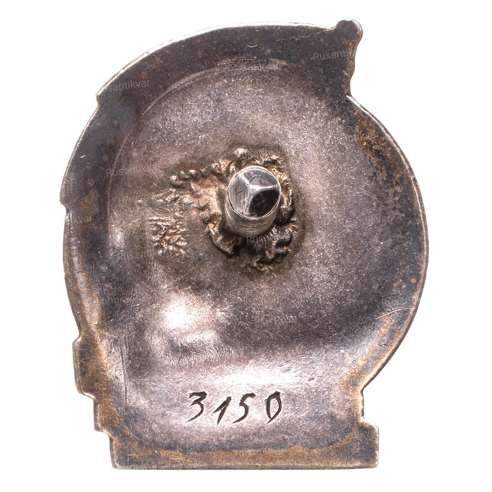 Московский Монетный двор, 1950 - 1955 гг. Бронза, анодирование, эмаль, ...гр. Размеры ... мм. На оборотной стороне выгравирован номер "12.721". На гайке набито "МОНЕТНЫЙ / ДВОР". Зак, Механошин, Калистратов, Воронченко "Ведомственные знаки отличия 1934 - 1991" № 1.190.2.