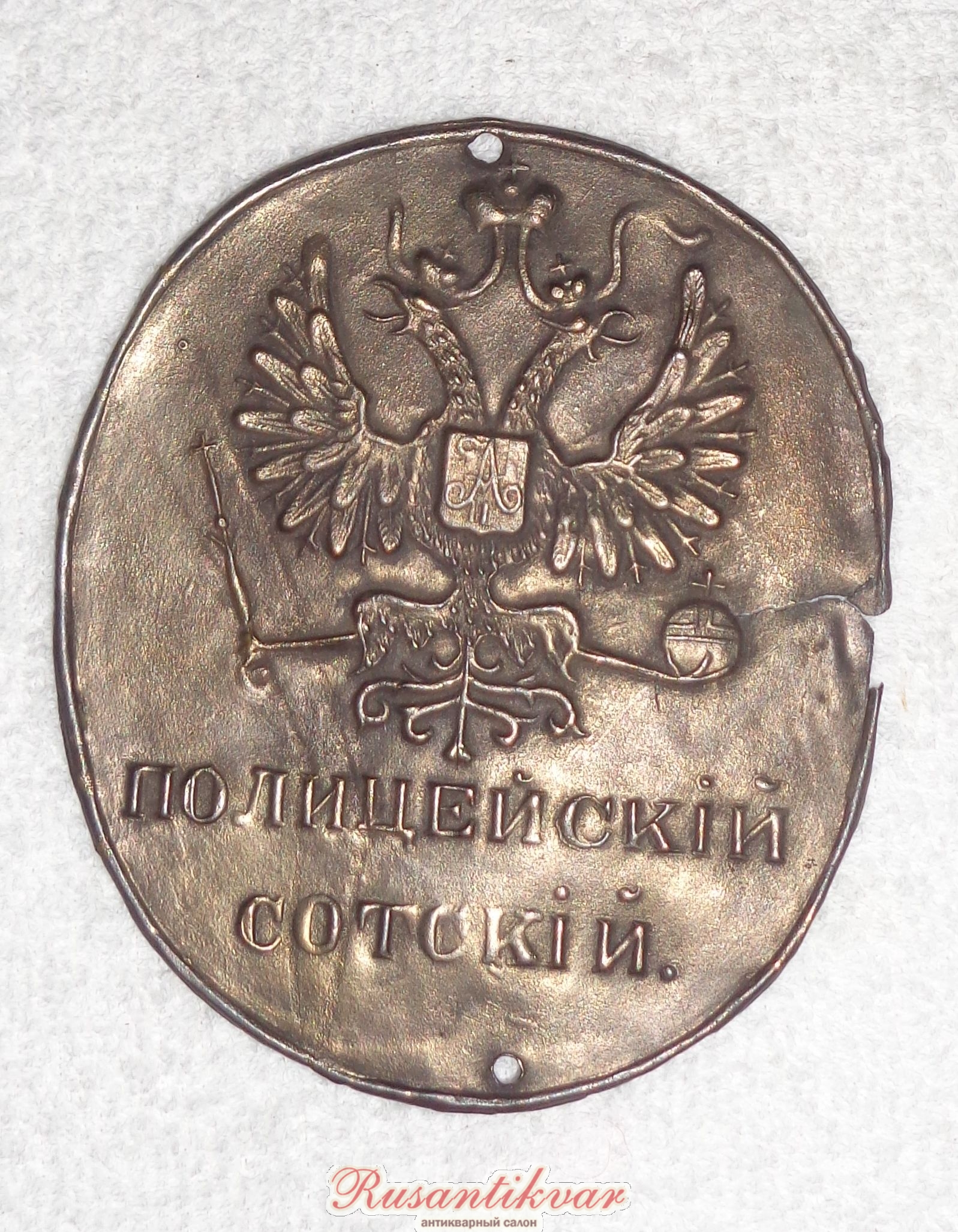 Должностной знак:полицейскiй сотскiй,при Александре 2-м