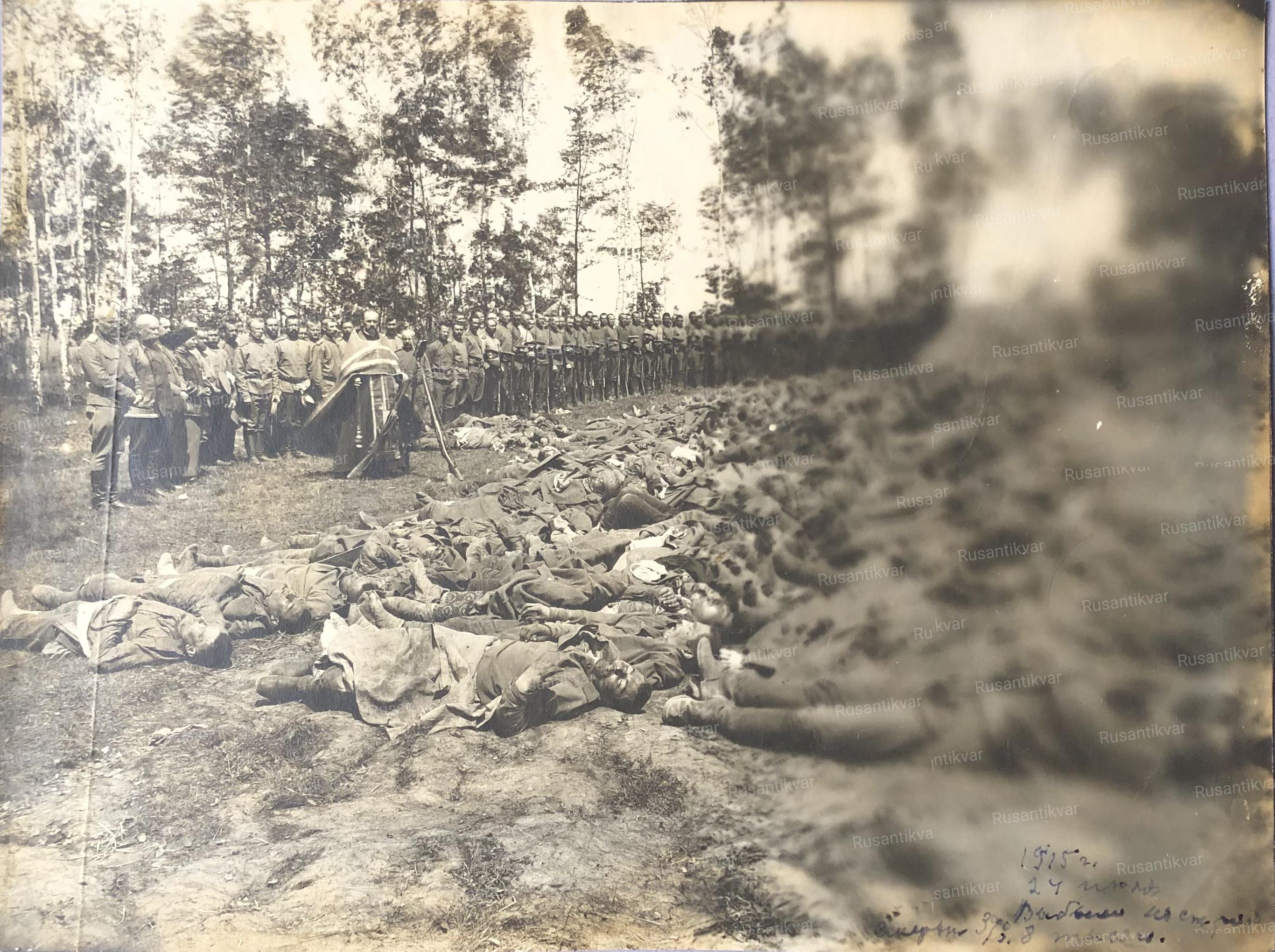 Похороны погибших 24 июля 1915 года.Отступление русской армии 1915 года, продолжавшееся почти полгода — с мая по сентябрь, почти сразу вошло в историю как «Великое». Великим в событиях тех дней действительно было почти все. И масштаб военной операции и территориальные потери страны — 15% как плата за спасение тех самых армий. И героизм десятков и сотен тысяч русских солдат, ценой своих жизней спасших большую часть отступающей армии от окружения и разгрома.