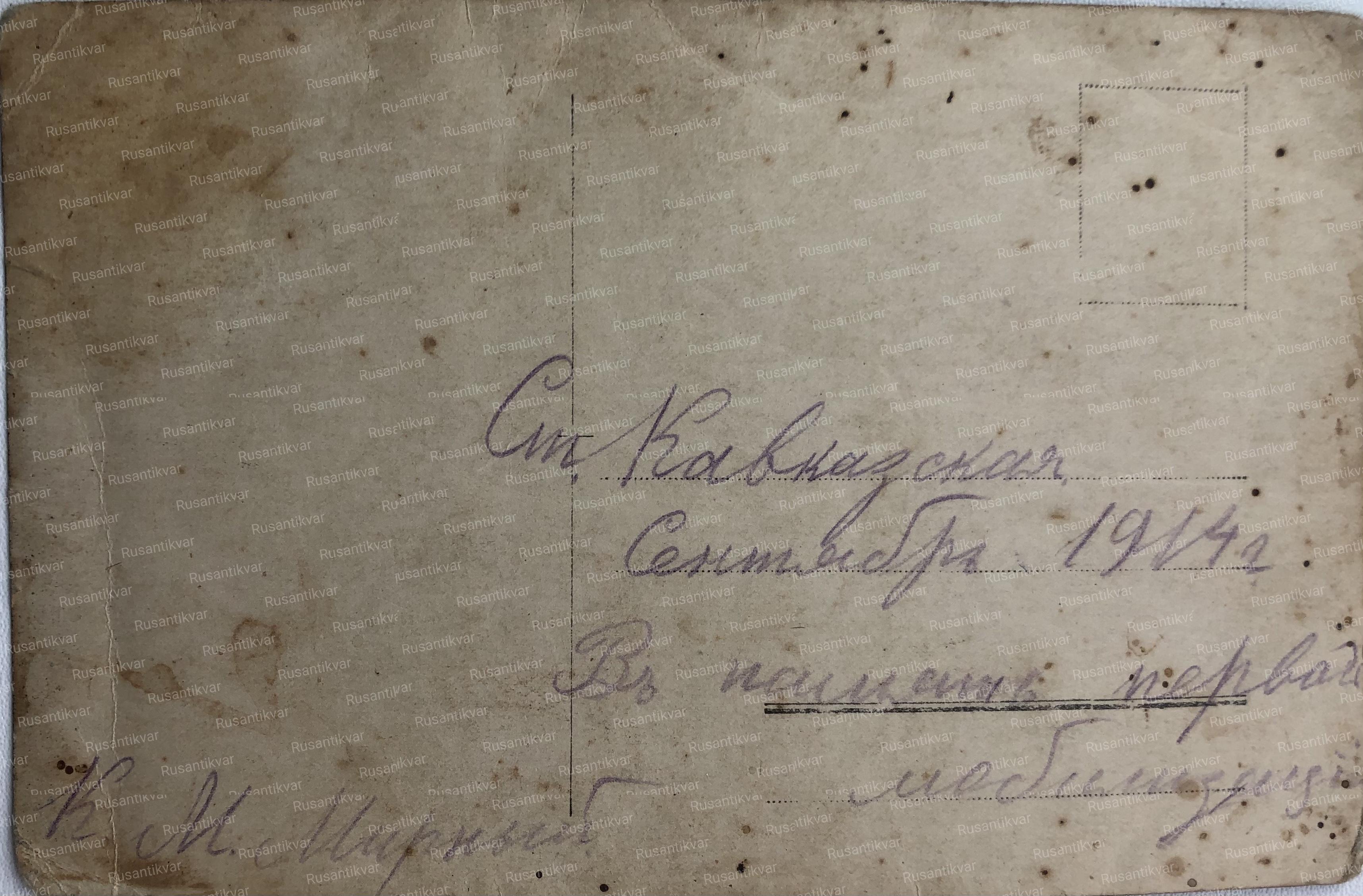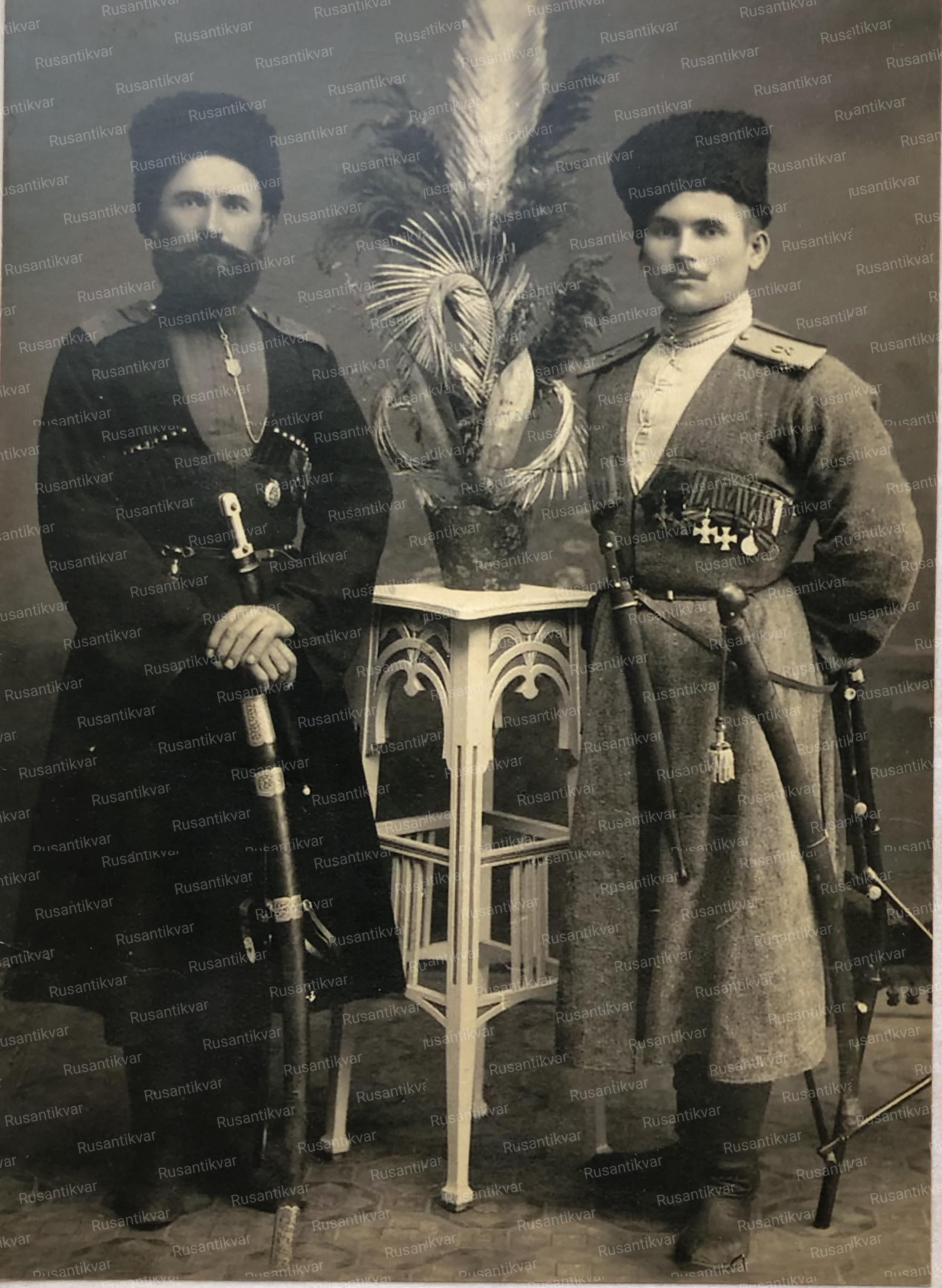 Фотография казаков 6-го Донского казачьего полка.Крестиком помечен казак Шведчиков Василий Иванович.