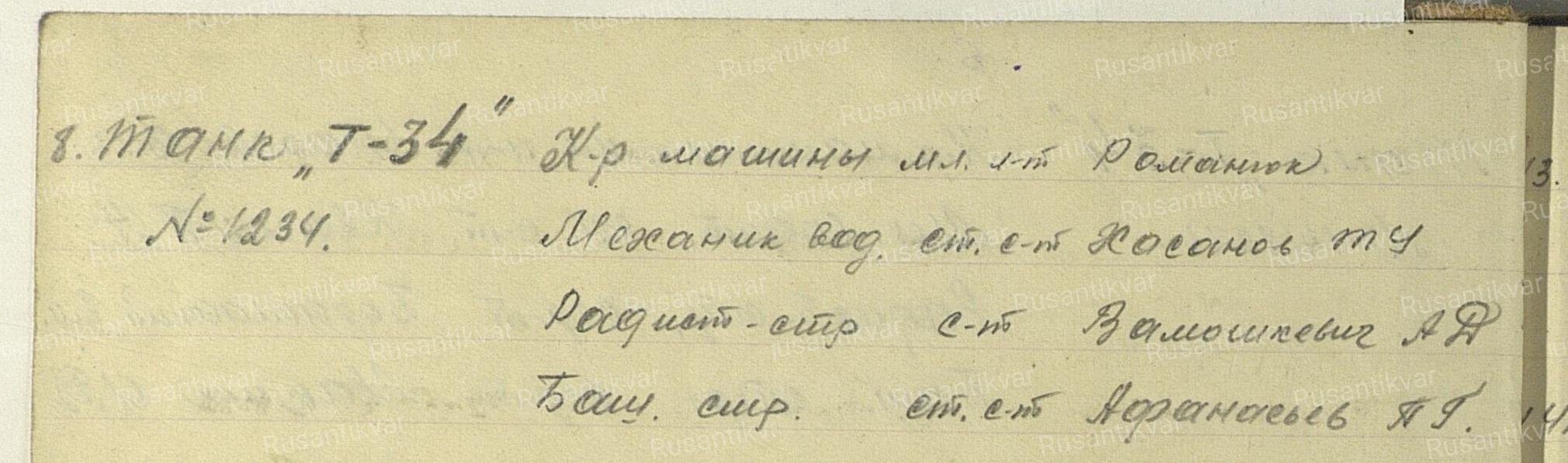 13. Выписка из приказа о составе экипажа танка Т-34…