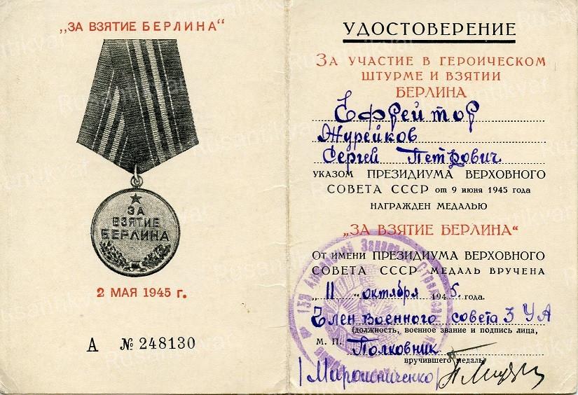 11. Удостоверение к медали «За взятие Кенигсберга»;