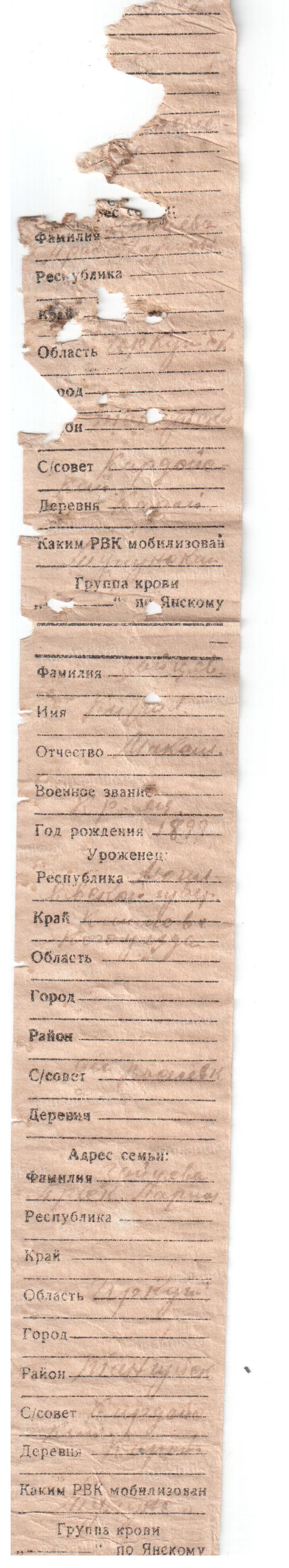 3. Двое бойцов ранее были пленены и освобождены из плена. Рядовой 525 сп 171 сд Ковынев Петр Андреевич, уроженец Тамбовской области, 25 октября 1941 года пропал без вести в составе 233 сп 179 сд, был пленен и освобожден из плена к декабрю 1943 года. Младший лейтенант 380 сп 171 сд Попов Иван Николаевич, уроженец с. Вармалей Дальнеконстантиновского района, Горьковской области, еще в 1941 году, будучи командиром пулеметного взвода 539 сп 108 сд 16 А, попал в плен, а к марту 1942 года был освобожден, и, видимо, направлен в действующую армию из Гороховецкого спецлагеря НКВД.