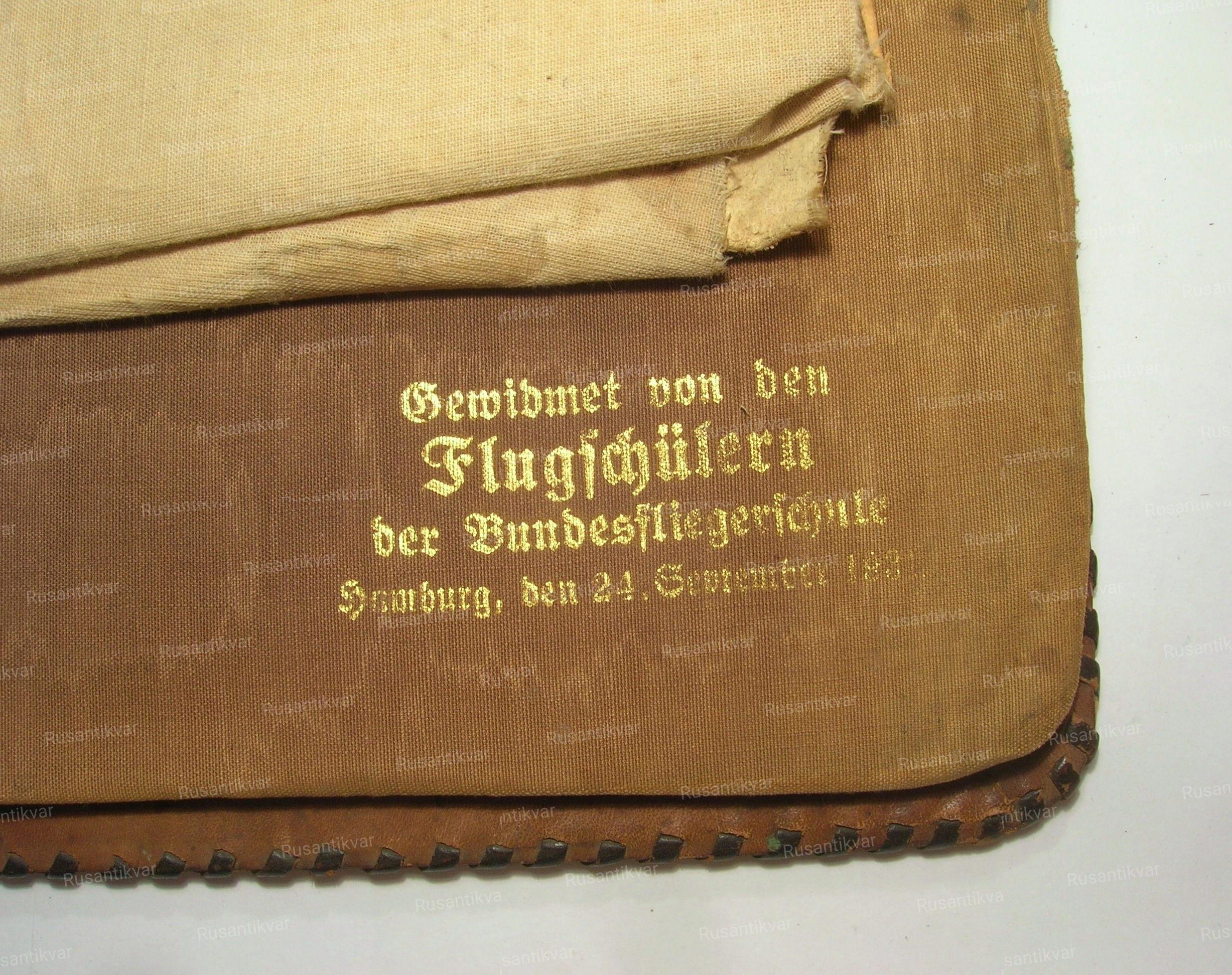 Большая кожаная папка с тиснением, для учебного материала, с остатками плаката. 1930-какой-то год (последняя цифра неразборчива) . Размер папки: 31х37 см .