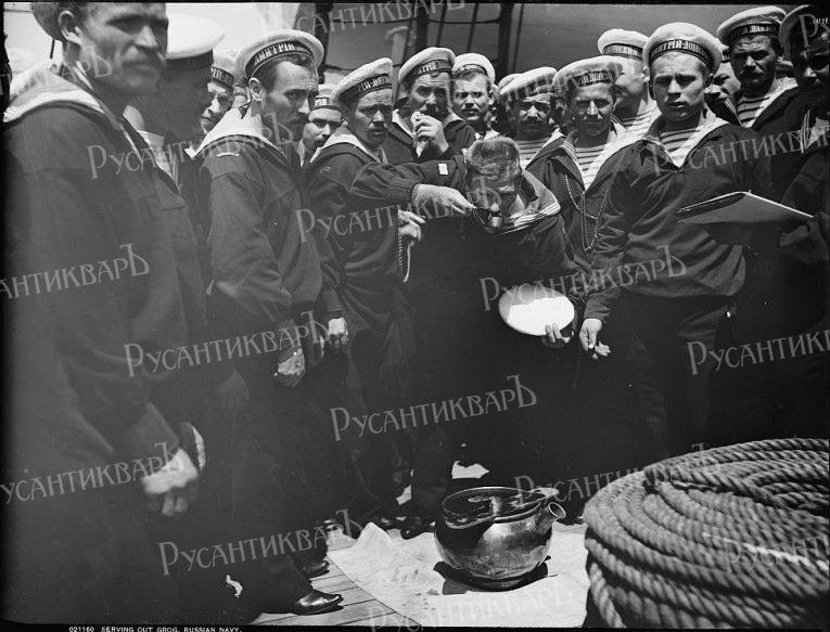 Эта традиция идет ещё с петровских времен, когда солдатам для поднятия боевого духа стали раздавать так называемое хлебное вино или флотсквя чарка.До 1908 года во время военных действий нижние чины действующей армии получали по три чарки (160 граммов) водки в неделю, нестроевые - по две чарки. Годовая норма выдачи водки в праздничные дни равнялась 15 чаркам. Кроме того, офицер мог награждать отличившихся бойцов за свой счет.С началом Первой мировой войны в Российской империи был введен сухой закон, но моряки по-прежнему получали «винную порцию».