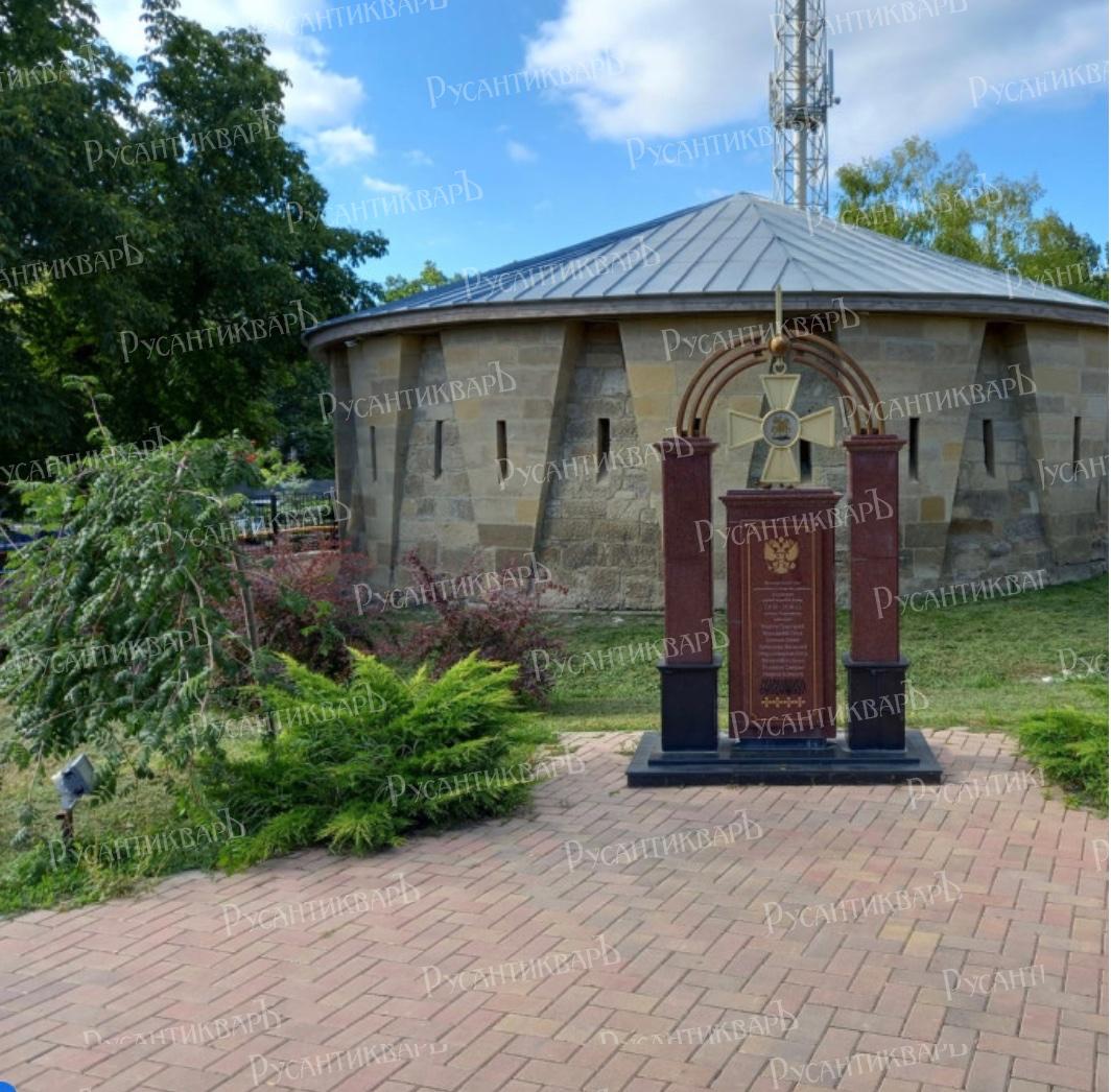 Мемориальный знак установлен в честь кисловодчан, участников первой мировой войны (1914-1918 г. г.) полных Георгиевских кавалеров.