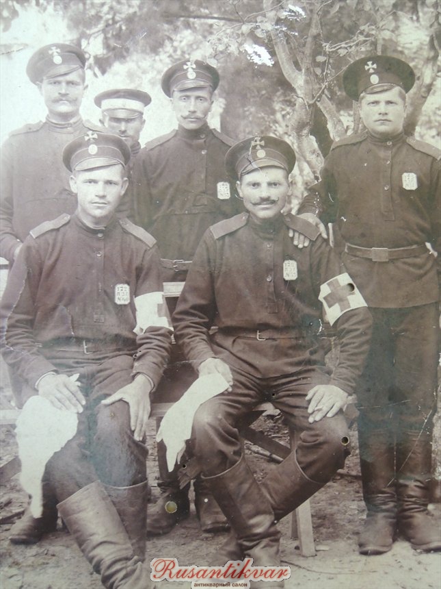 Нижние чины - ратники народного ополчения с повязками военных санитаров, хорошо видны личные знаки (ЛОЗ). Фото из моей коллекции.