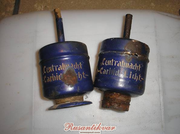 Коллеги прикупил я 2 карбидные Немецкие лампы, встречались ли кому и может кто то по ним что то знает!? Сохран для копонины просто огонь!!! одна по нижнему креплению и остаткам дерева очень смахивает на калатуху!??? могли они быть в исполнении гранаты типа там осветительная и т.п.... :? первая четко светильник у нее подставка.