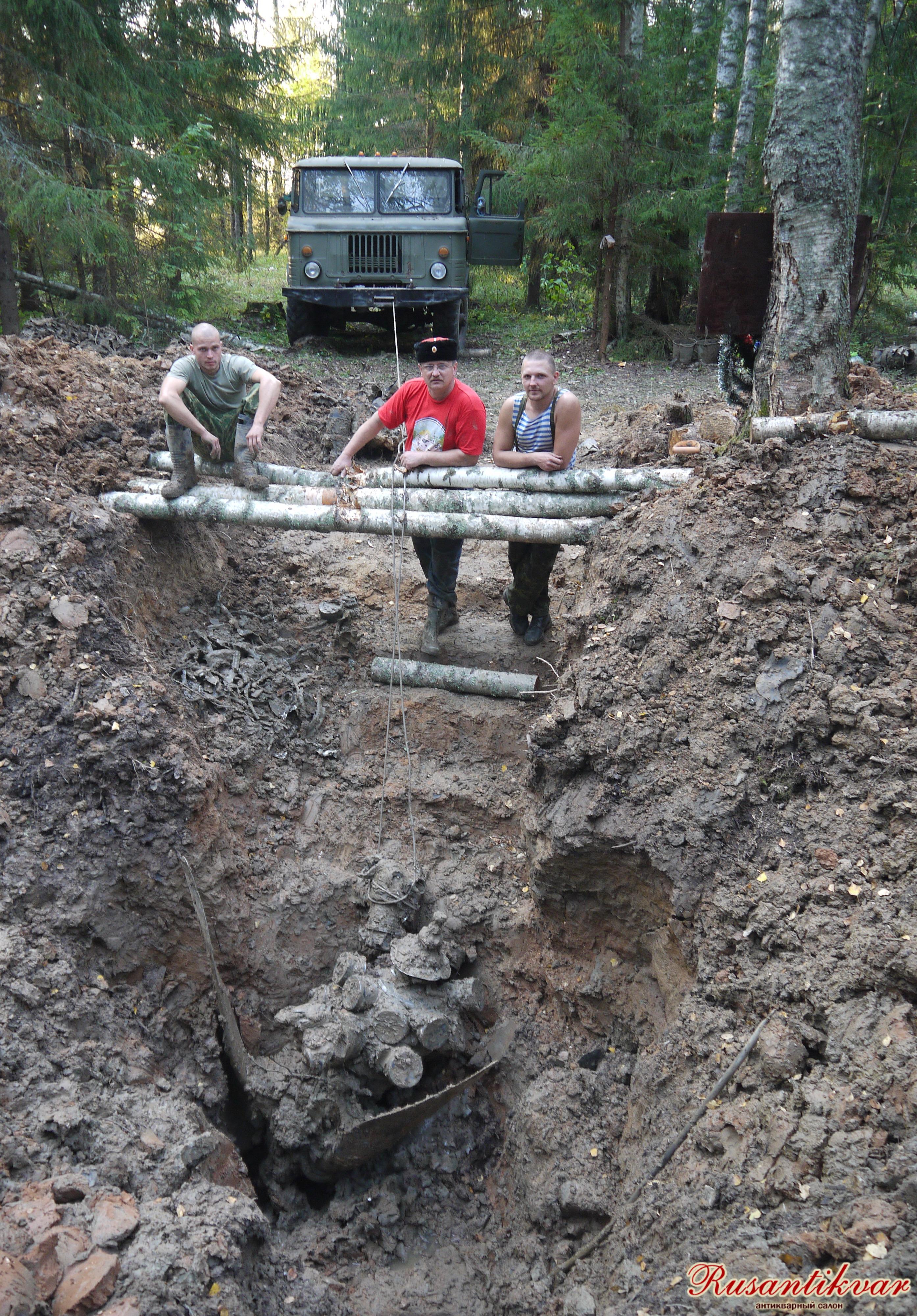 Самым важным итогом поисковой операции должны стать находки, проливающие свет на эту катастрофу. Значимы любые номера на обломках, которые смогли бы дать возможность идентификации экипажа. Местные жители нас предупреждали, что искать здесь уже нечего. Во-первых, в военные годы при дефиците металла в стране колхозников заставляли собирать и сдавать любой металлолом. Во-вторых, различных копателей здесь побывало за все прошедшие годы уже немало. Но для нас это не стало поводом для разочарования – у каждого свои цели. Действительно, углубившись в грунт до двух метров, мы убедились в факте активных раскопок, проводившихся до нас. Вся земля перелопачена, и лишь мелкие осколки металла, как изюм в пироге, хаотично наполняли этот слой. Копать было сложно. Временами шёл сильный дождь, и грунт в яме расползался под ногами, засасывая сапоги по самые голенища.