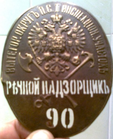 Должностной знак; Речной надзорщик Вытегорского округа путей сообщения, 1й инспекционный участок.
