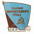 Знак"Ударник коммунистического труда завода ВЭФ".